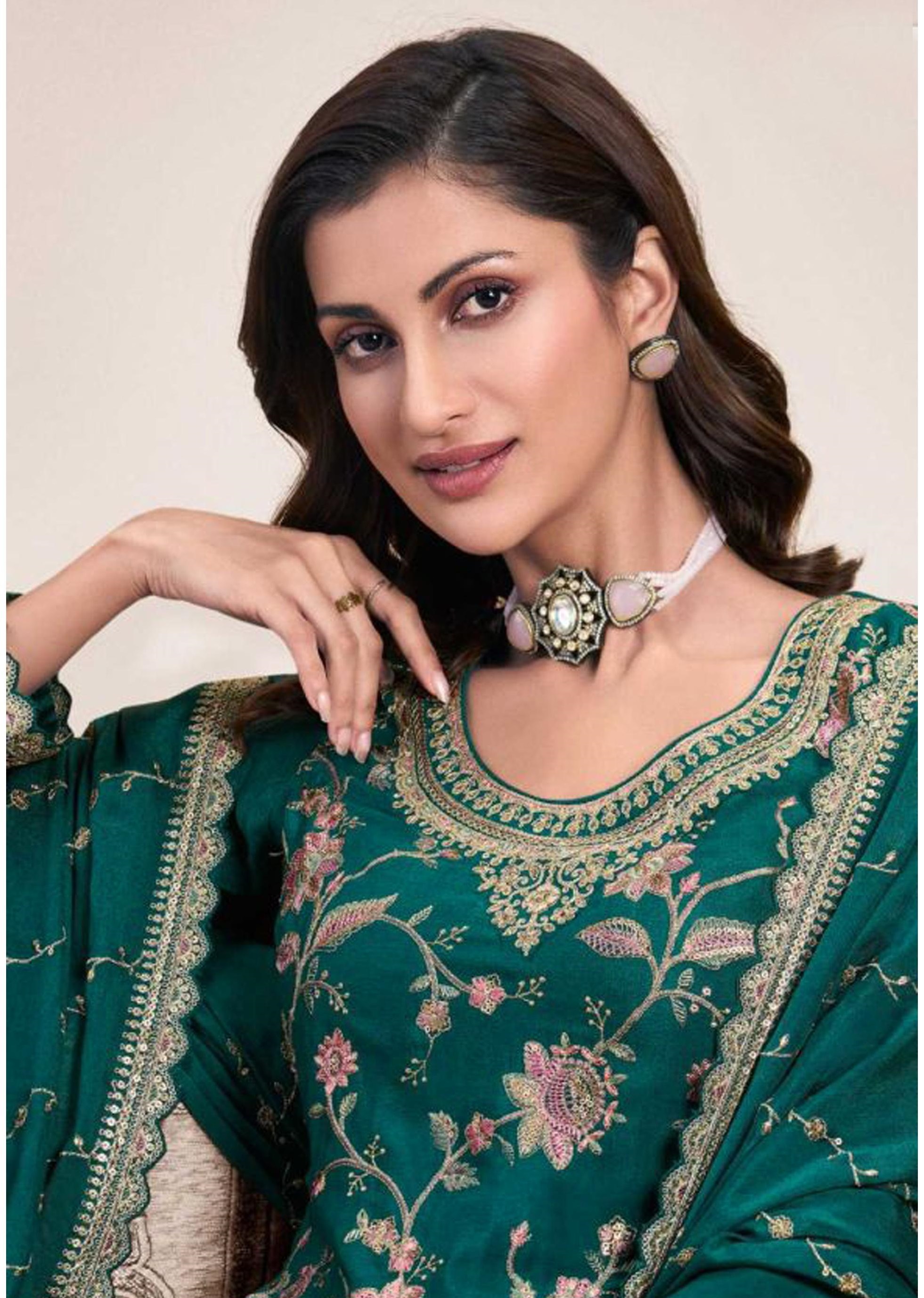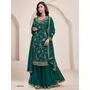 Green Heavy Chinon With Embroidery Sharara Suit (bottom Stitched)