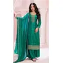Green Premium Embroidered Vichitra Silk Semi Stitched Salwar Suit