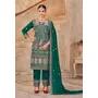 Green Vichitra Silk Readymade Suit with Embroidery & Lace Work