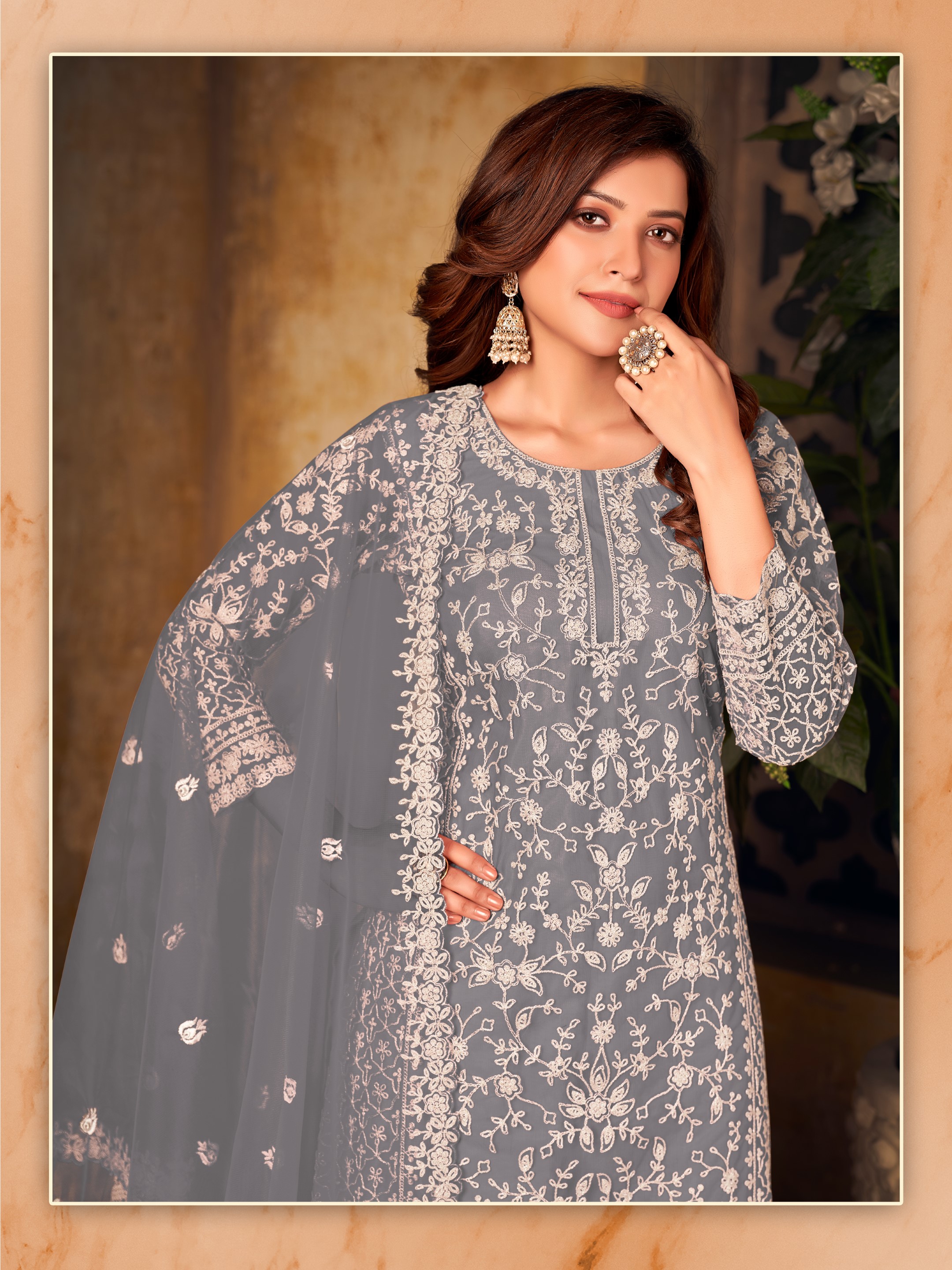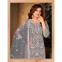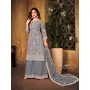 Grey Embroidered Net Semi Stitched Plazzo Suit