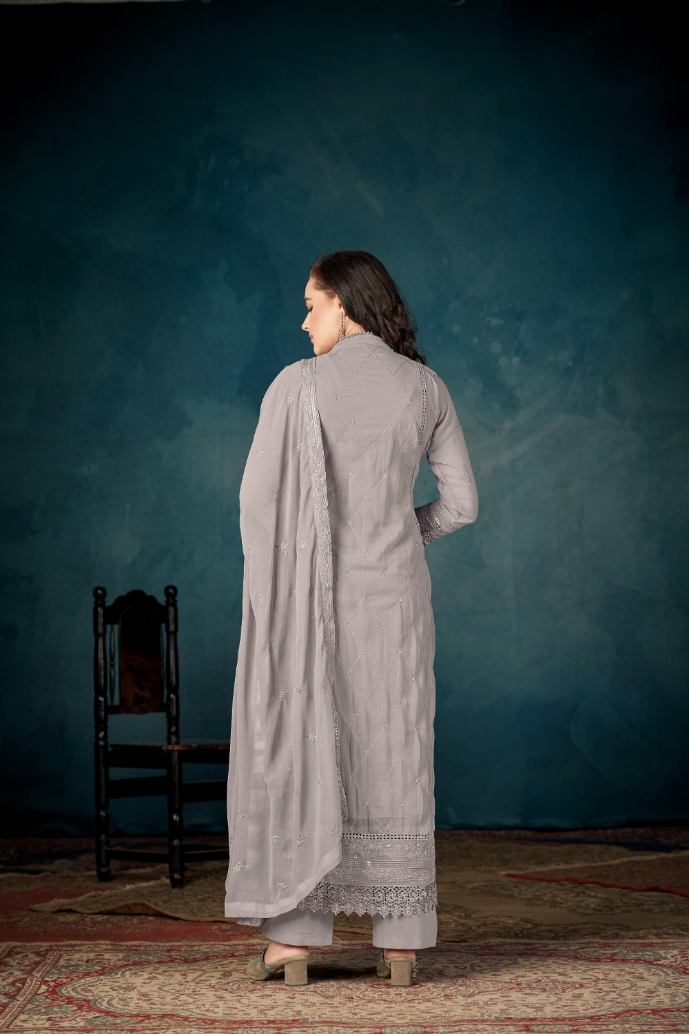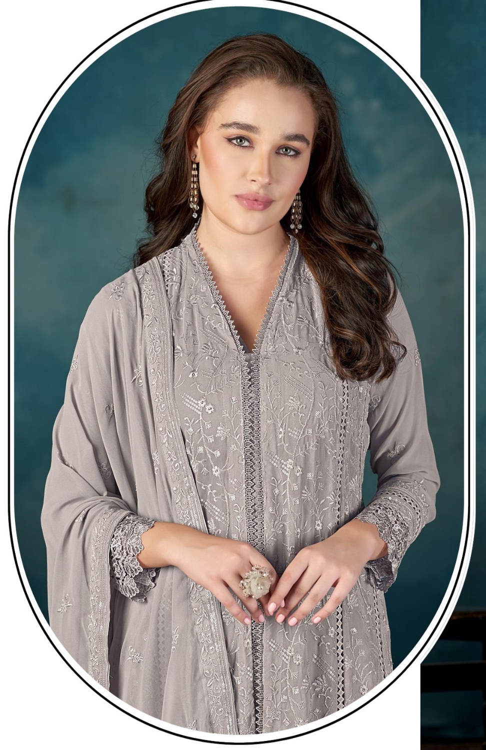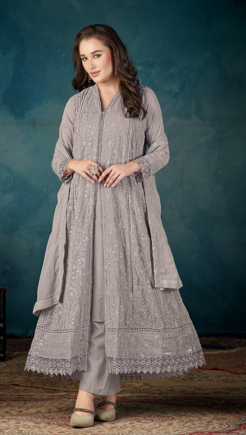 Grey Heavy Faux Georgette Semi Stitched Suit with Embroidered Sequence Work