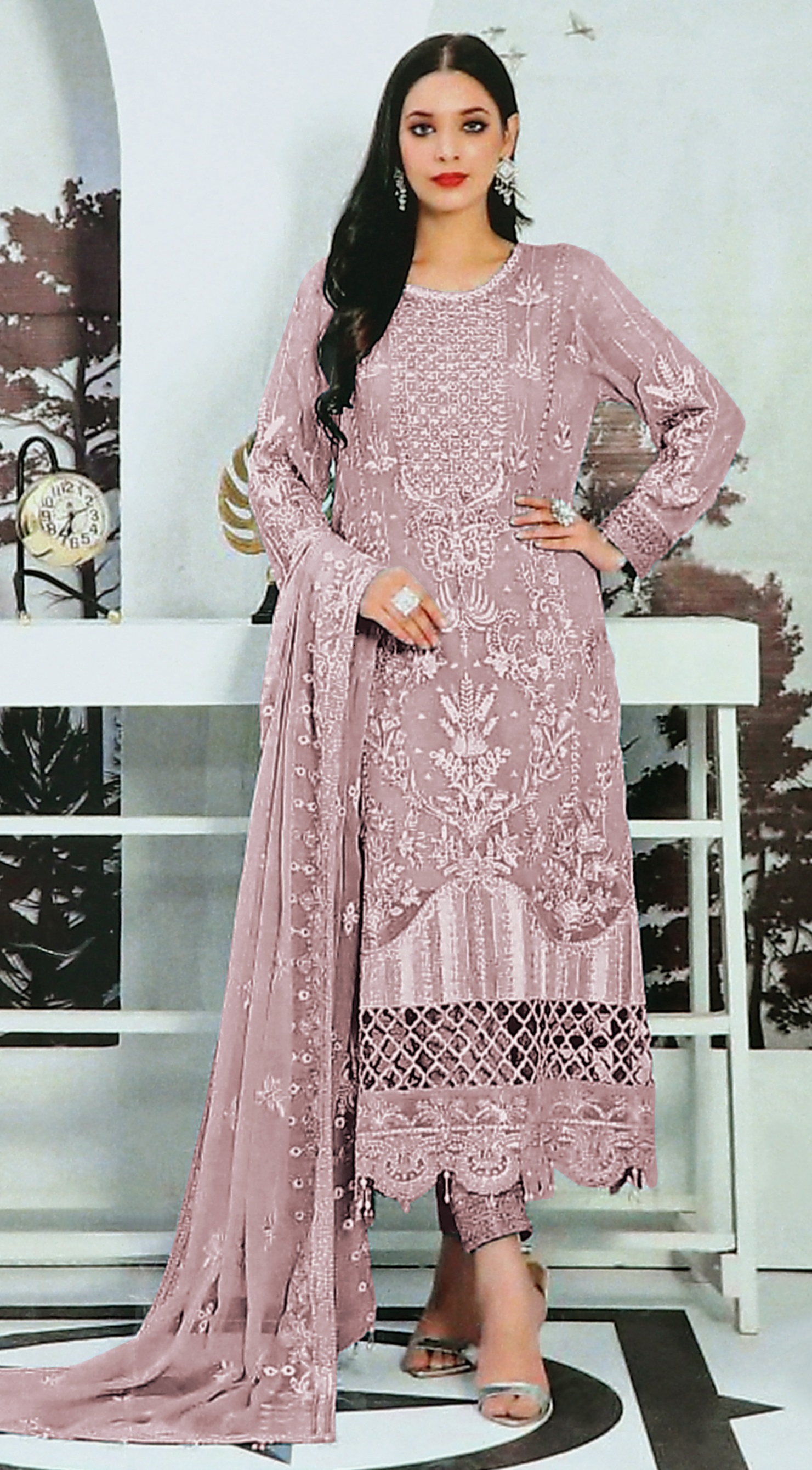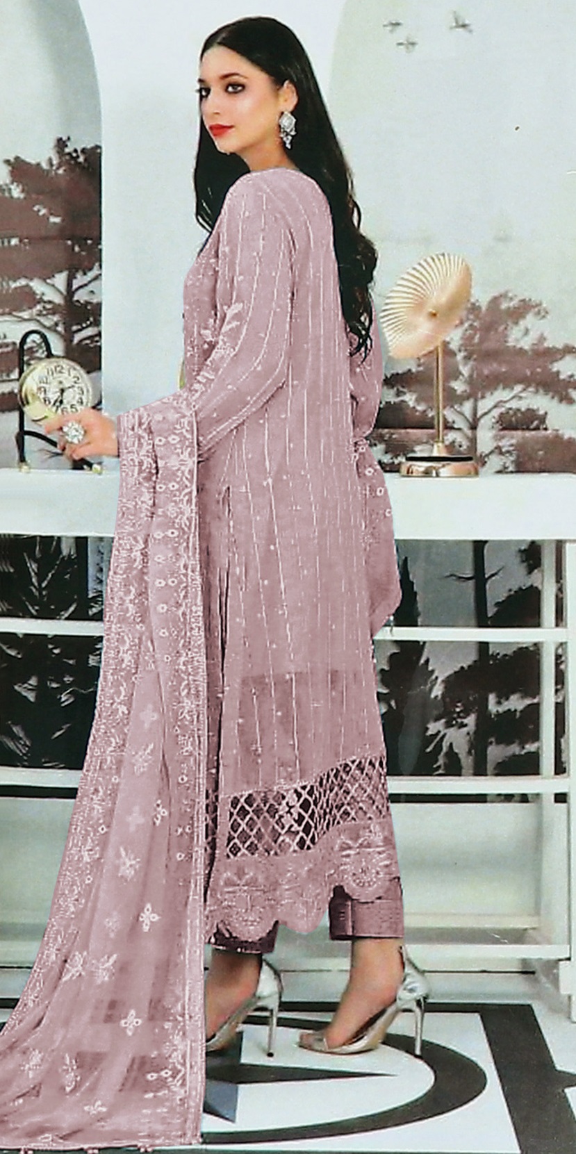 Lavender Embroidered Faux Georgette Semi Stitched Salwar Suit