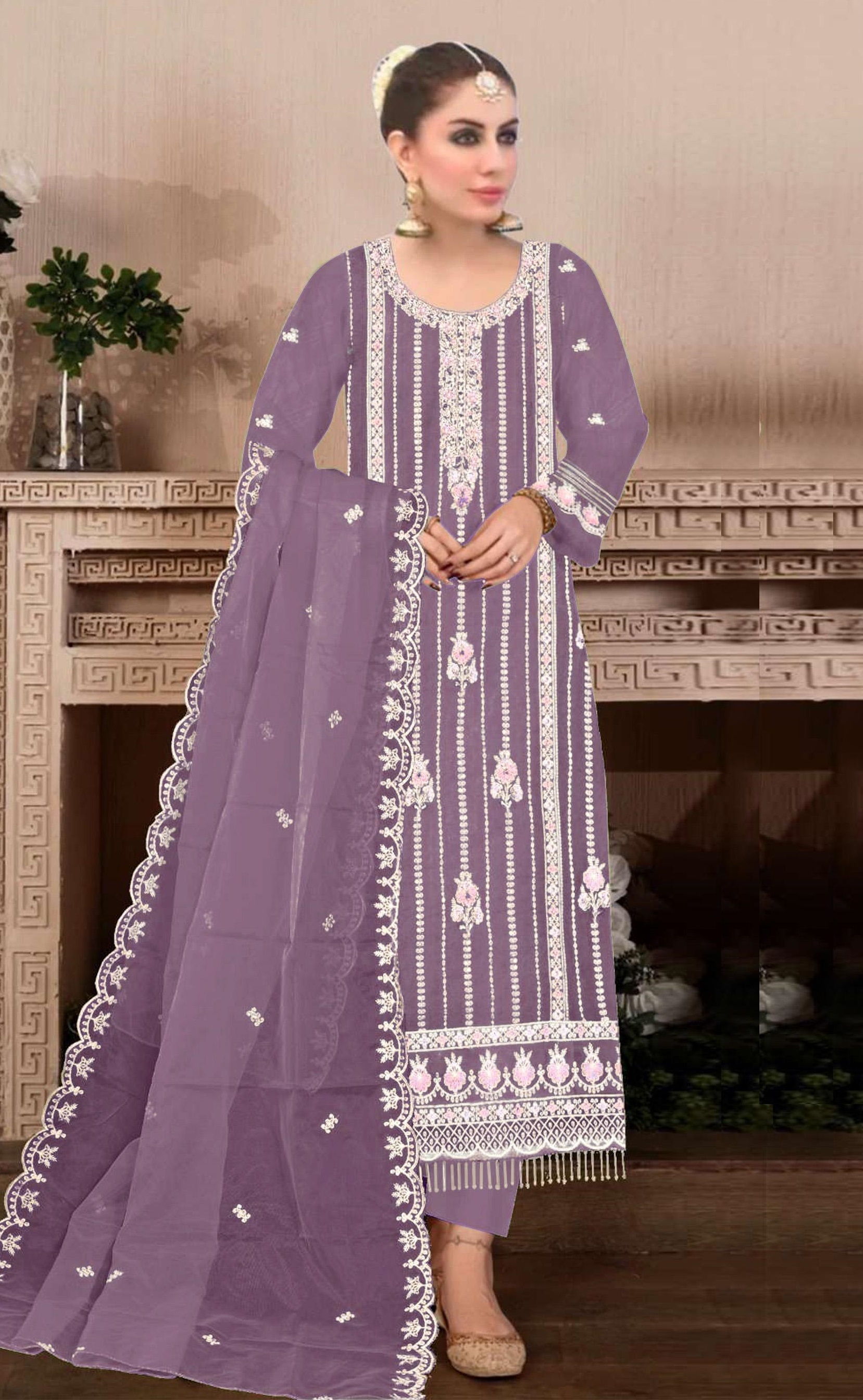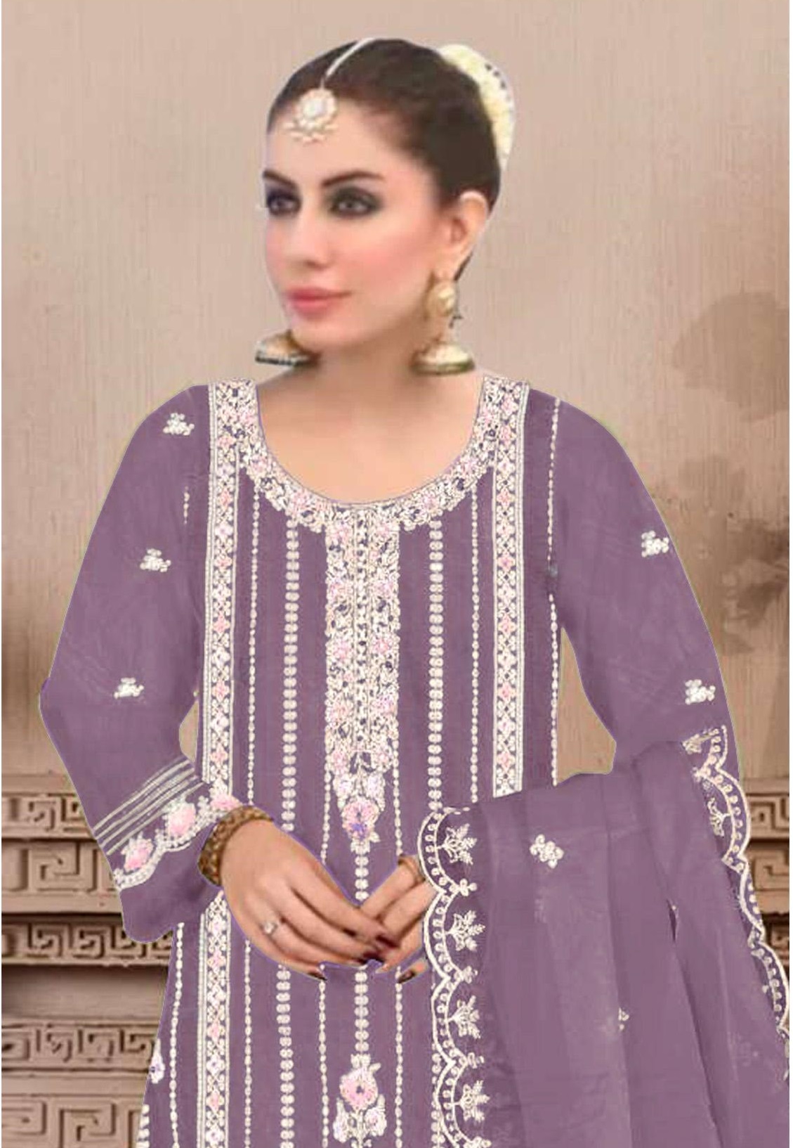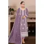 Lavender Embroidered Viscose Chinon Semi Stitched Salwar Suit