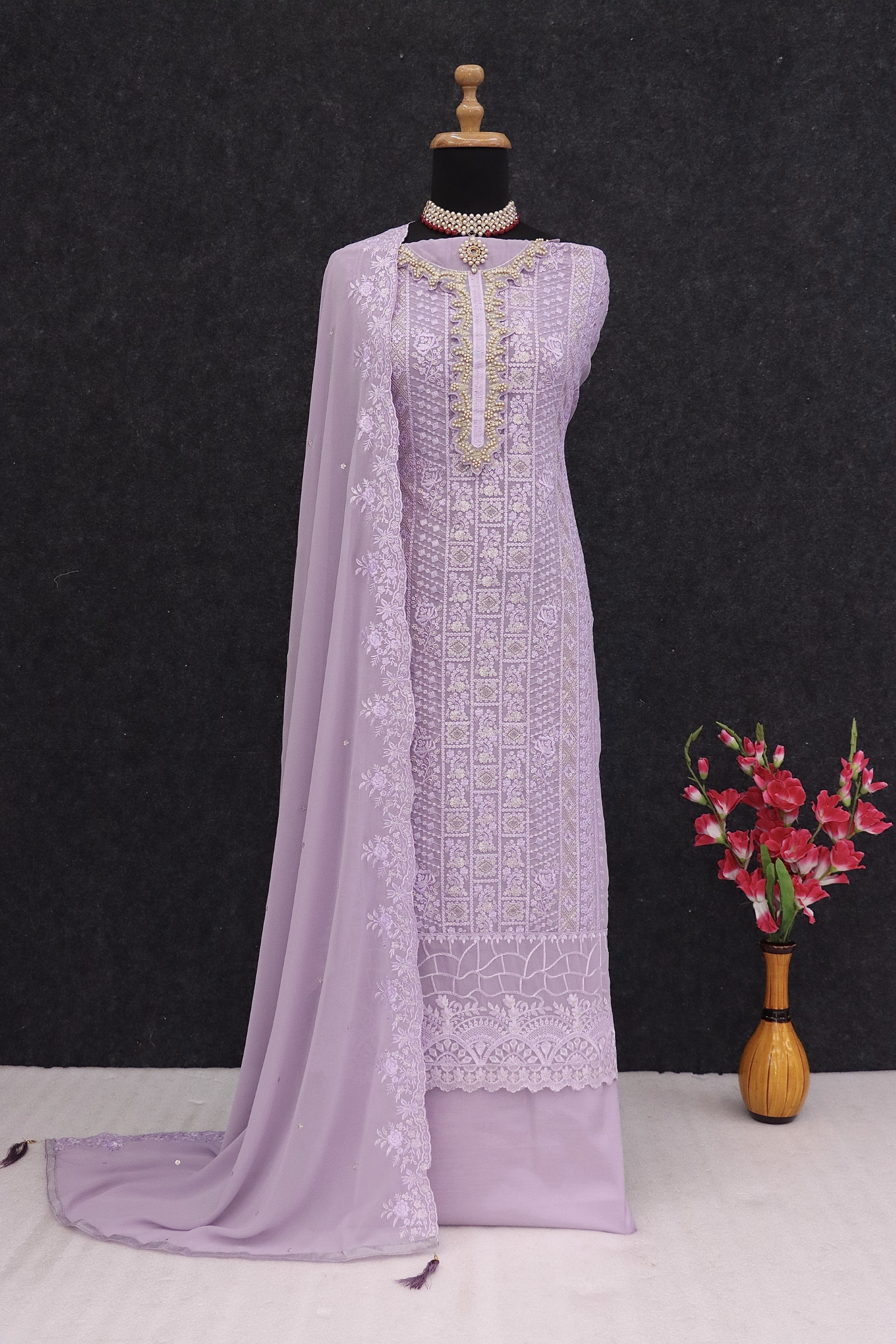 Lavender Georgette Semi Stitched Suit with Sequence & Multi Thread Work