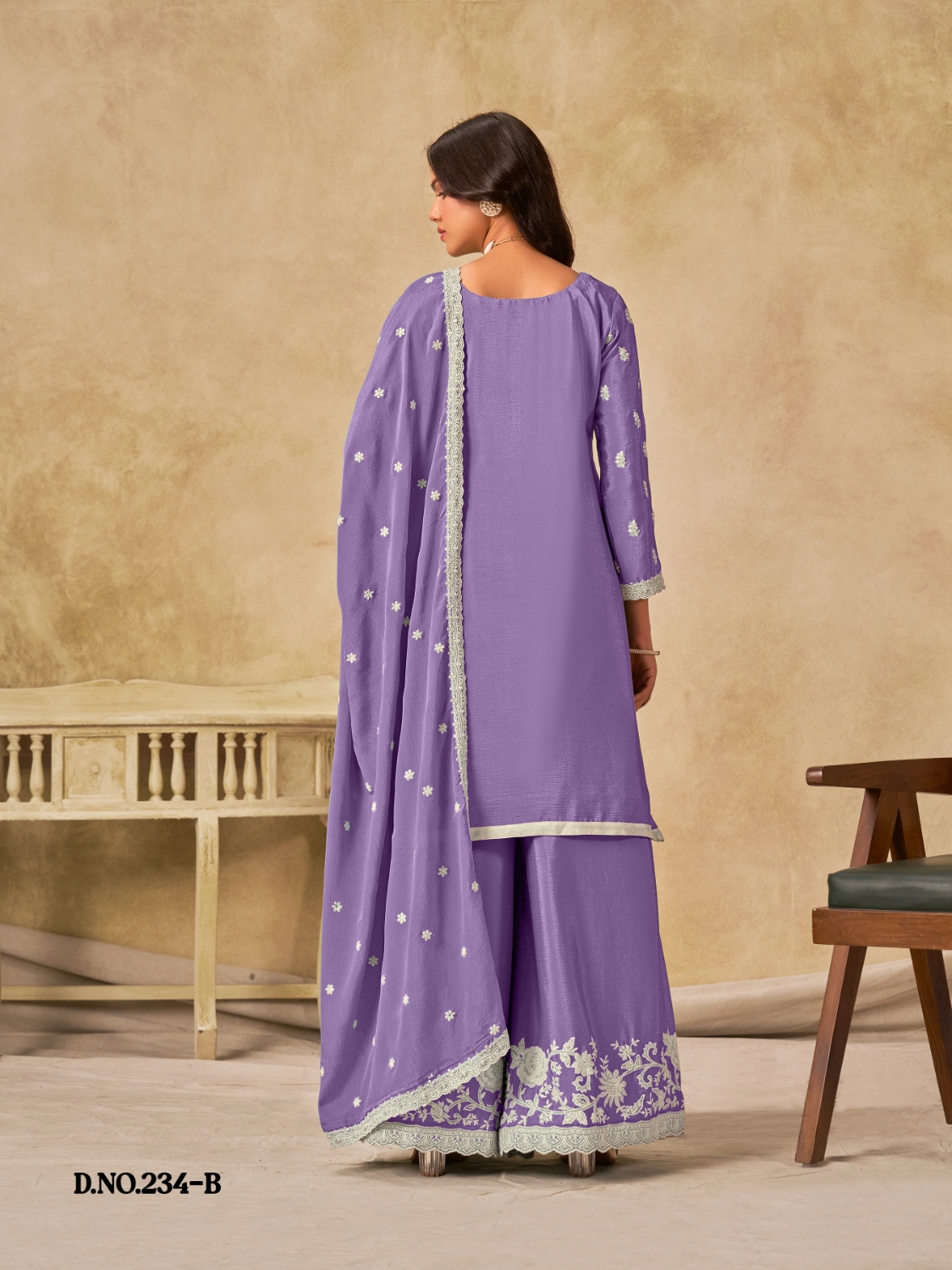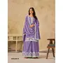 Lavender heavy chinon semi stitched palazzo suit with embroidey work