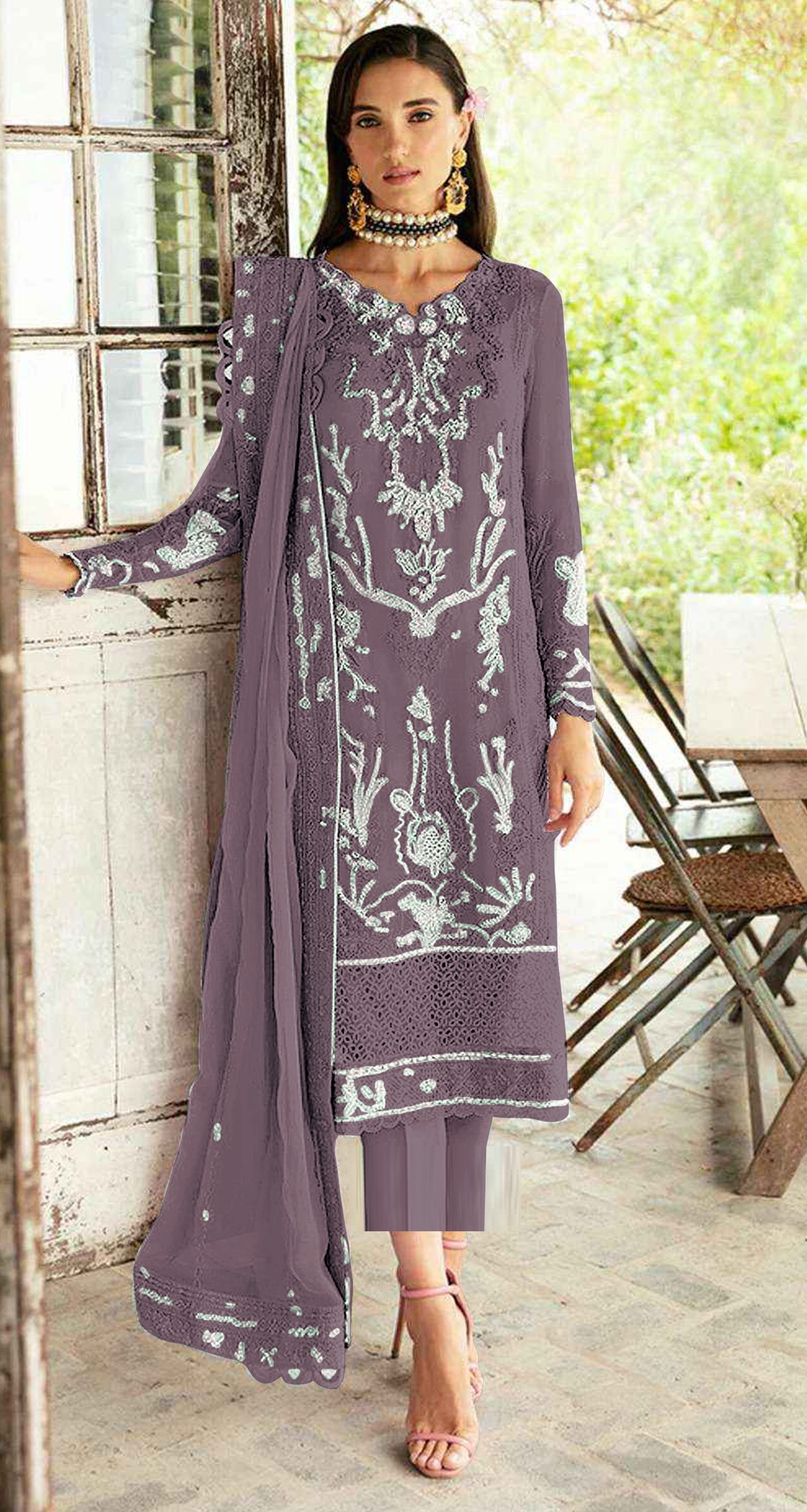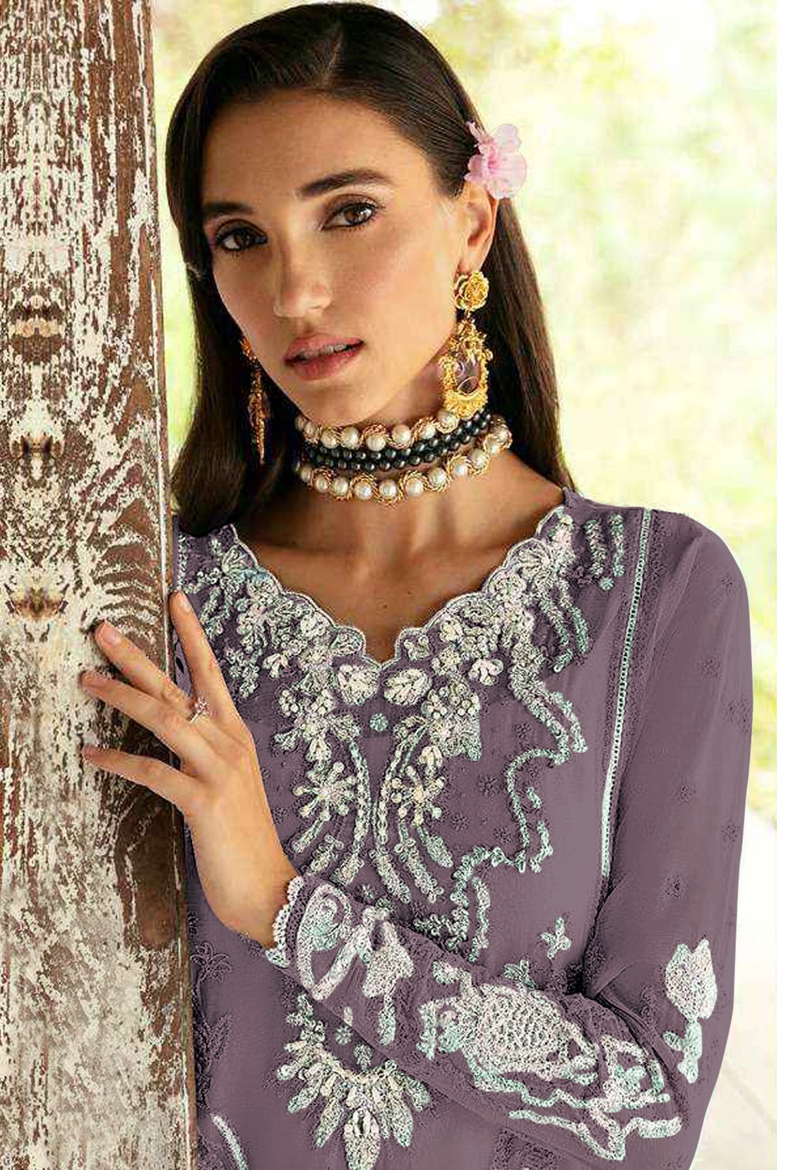 Lavenderl Fox Georgette Embroidered Semi Stitched Salwar Suit