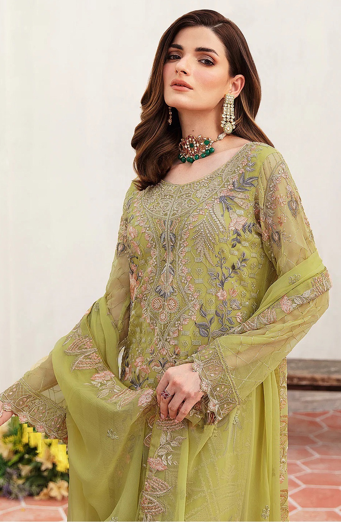 lemon Embroidered Faux Georgette Semi Stitched Salwar Suit