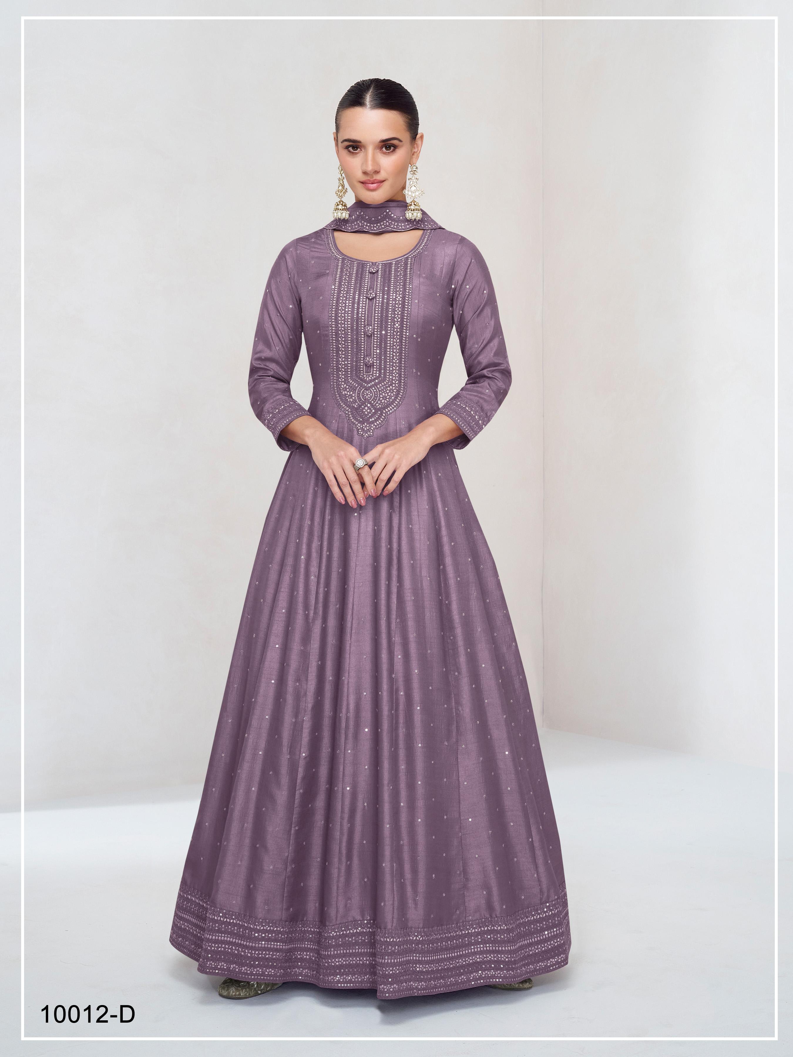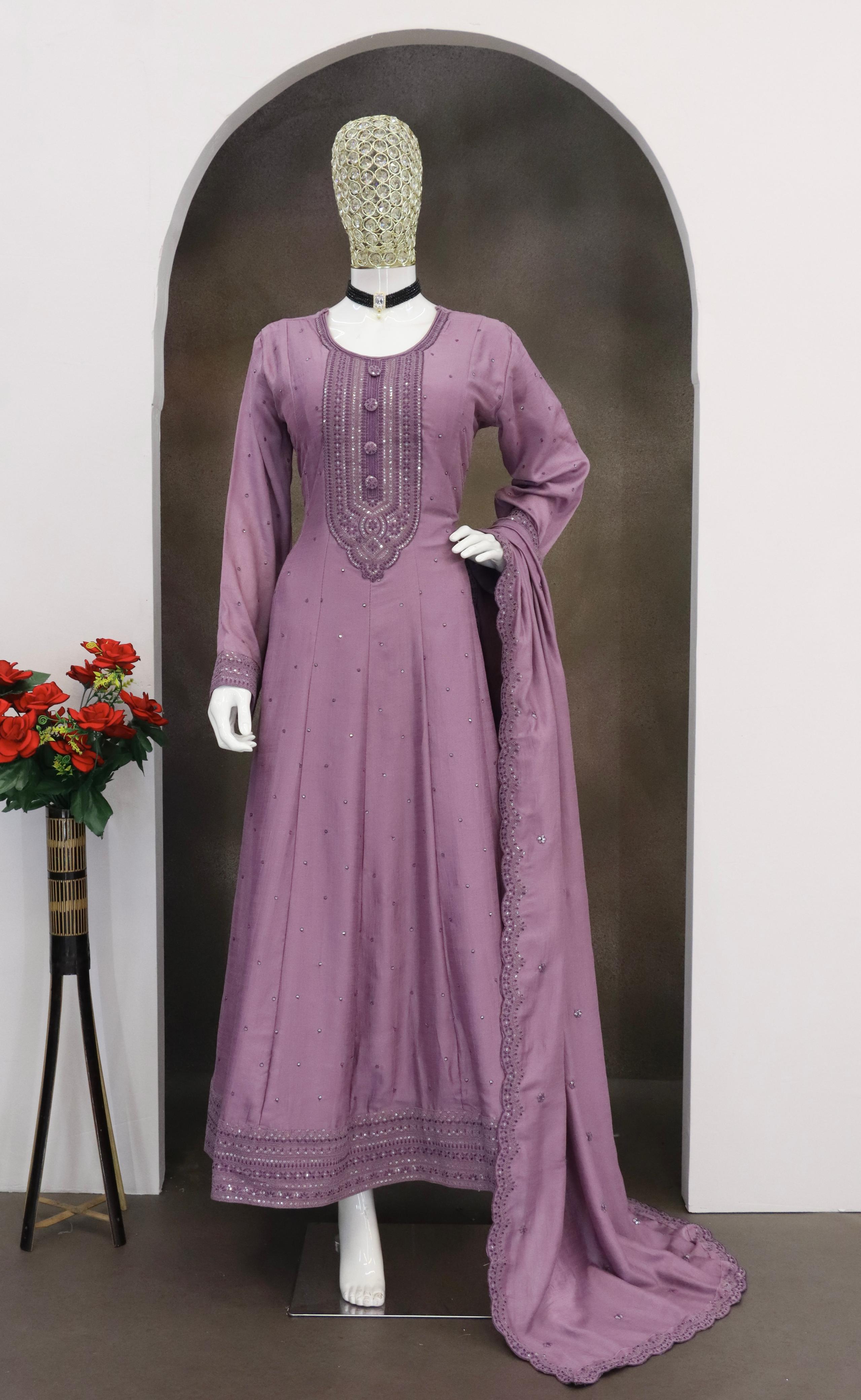 Levender Embroidered Vichitra Silk Free Size Stitched anarkali suit