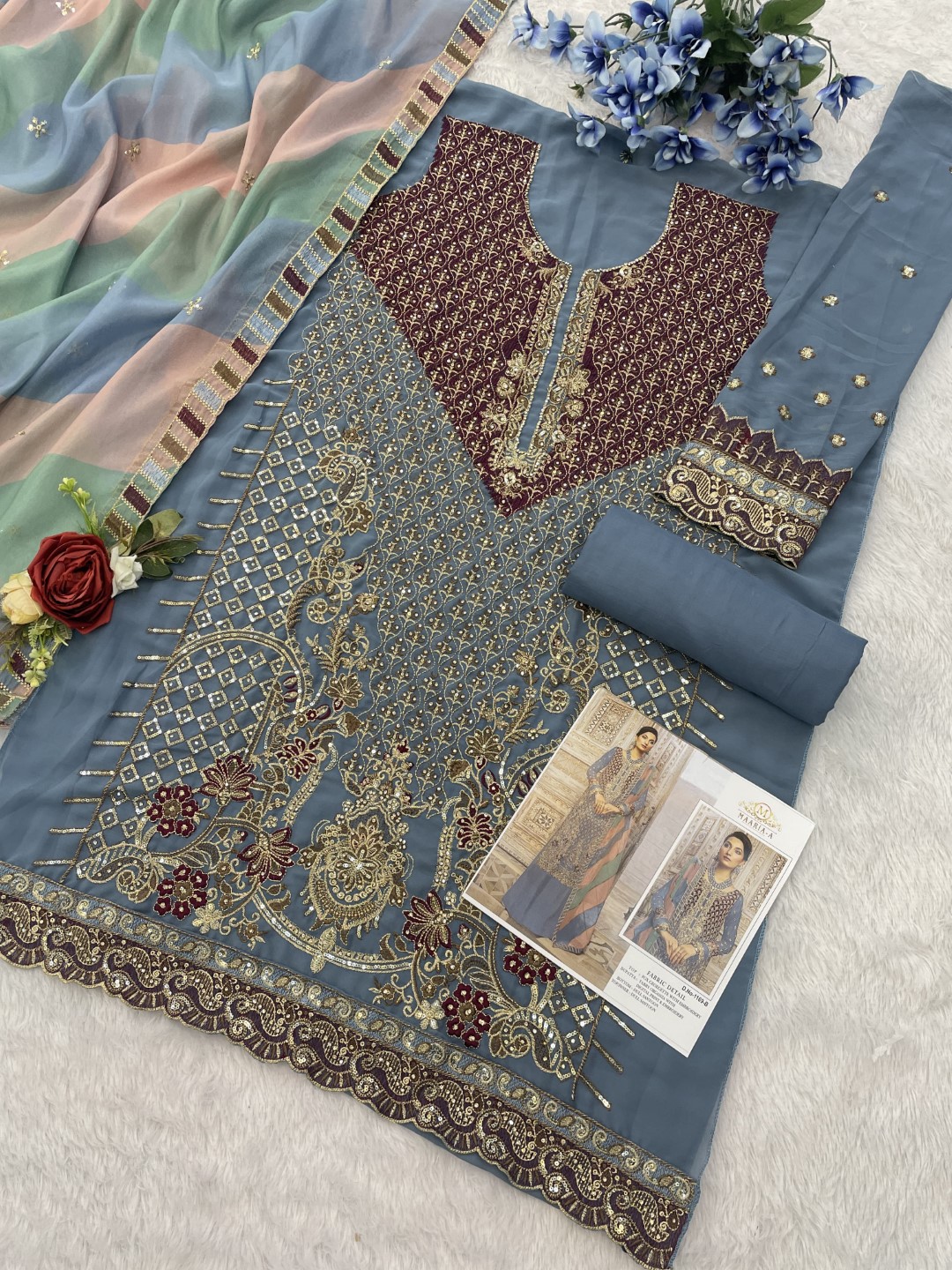 Light Blue Heavy Fox Georgette Embroidery Plazzo Suit