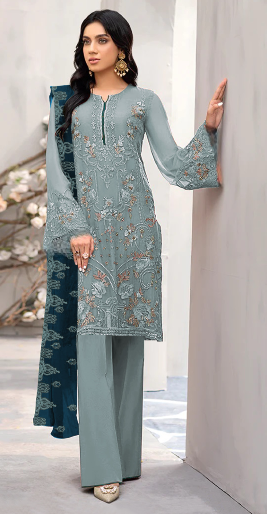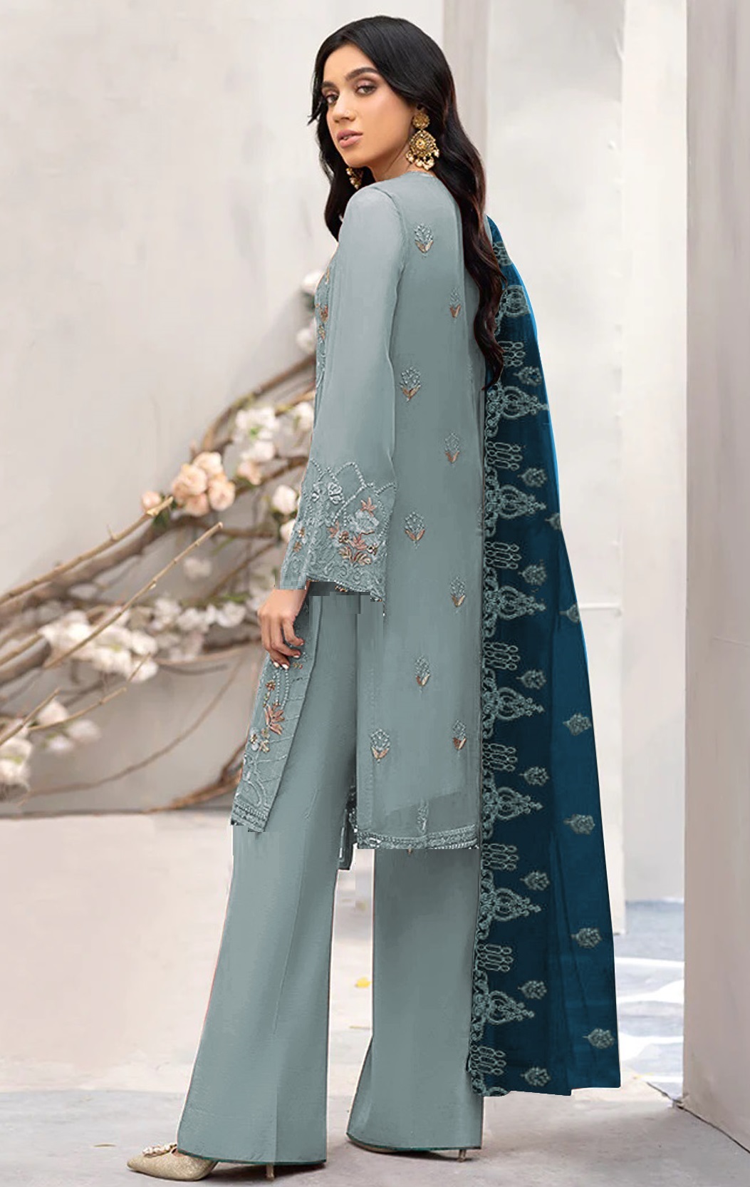 Light green Embroidered Faux Georgette Semi Stitched Salwar Suit
