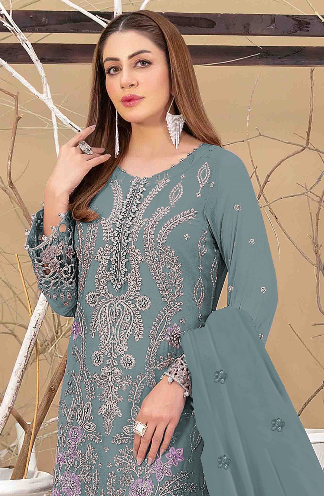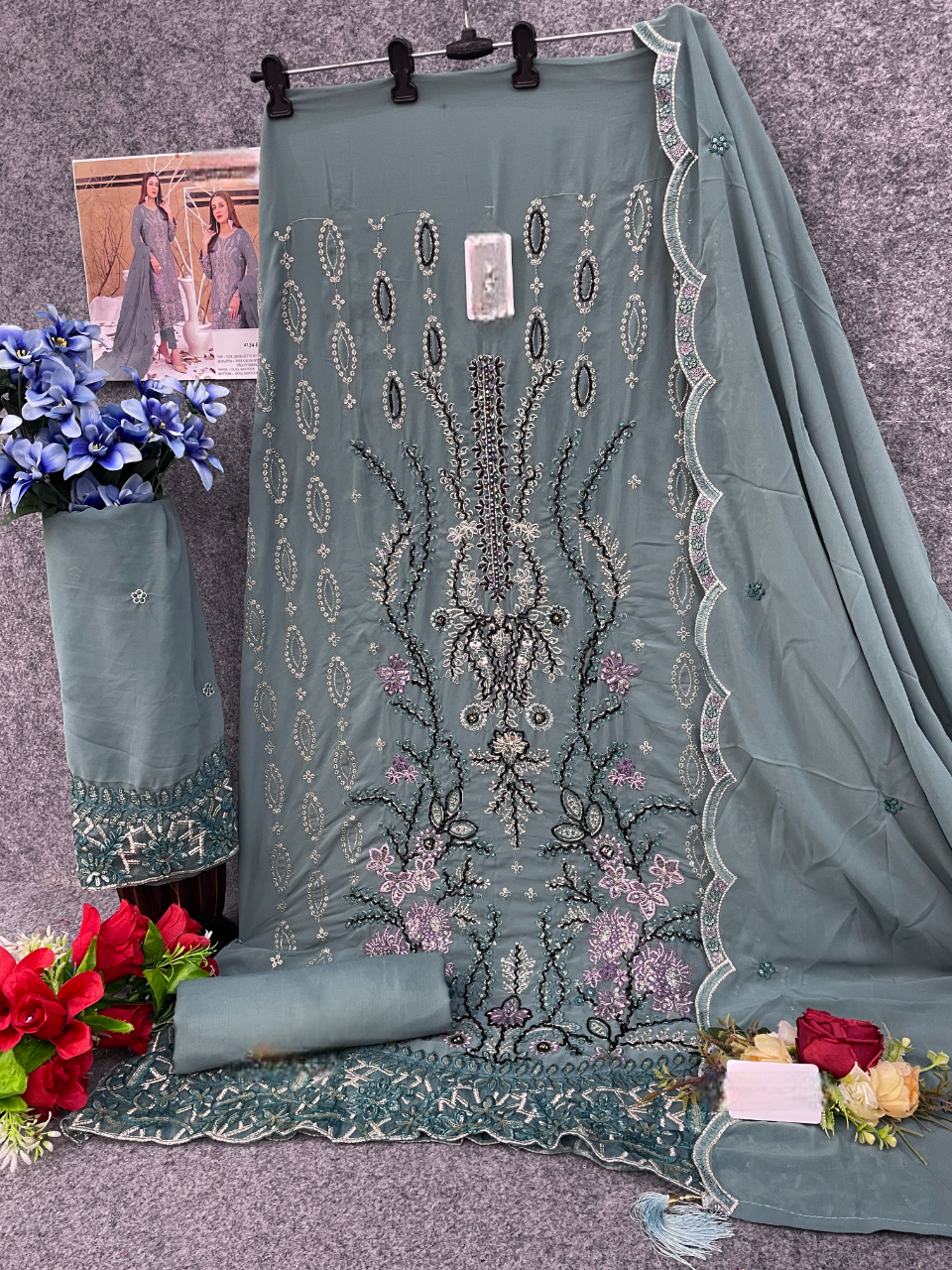 Light green Embroidered Faux Georgette Semi Stitched Salwar Suit