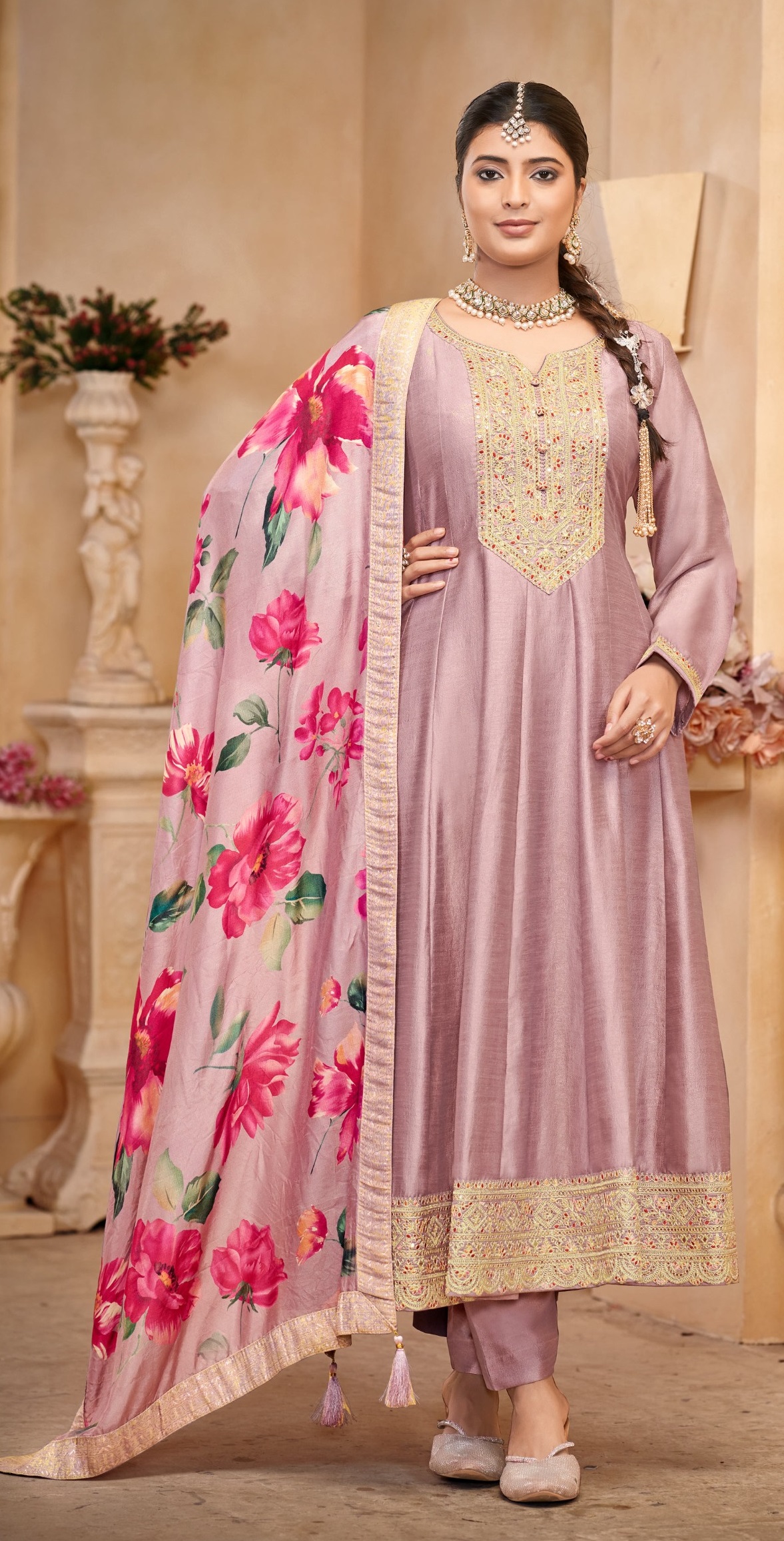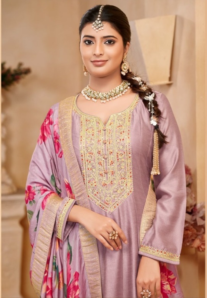 Light Lavender Vichitra Silk Sequence Embroidered Semi-Stitched Salwar Suit