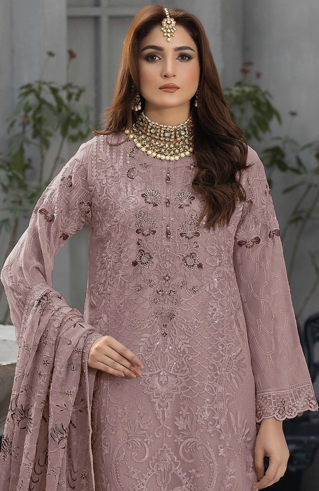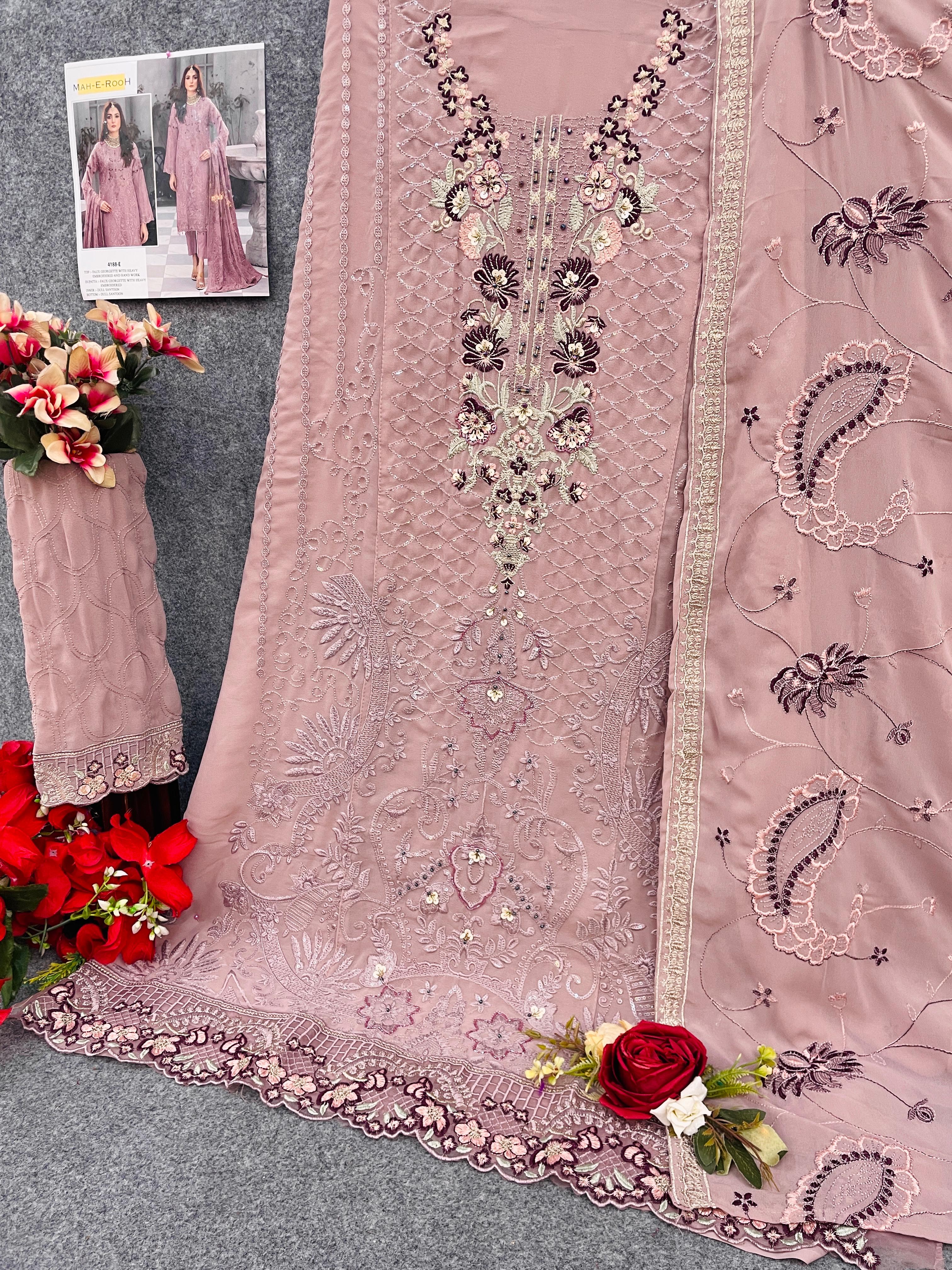 Light Pink Fox Georgette Embroidered Semi Stitched Salwar Suit