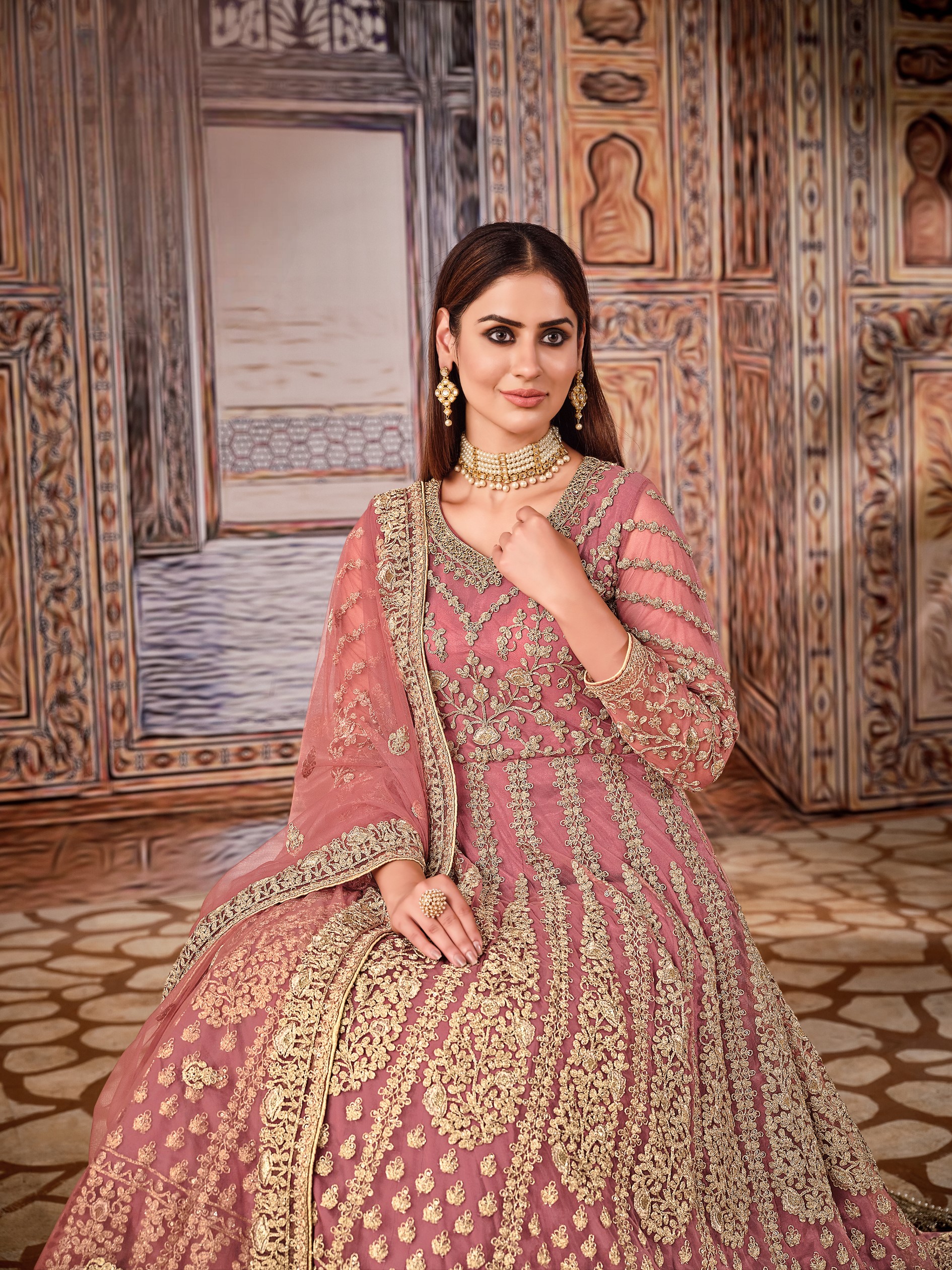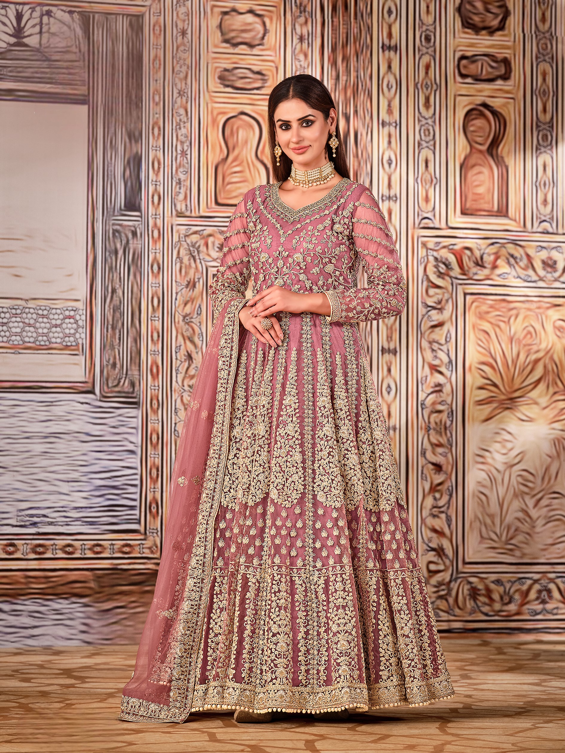 Light Purple Embroidered Net Semi Stitched Anarkali Suit