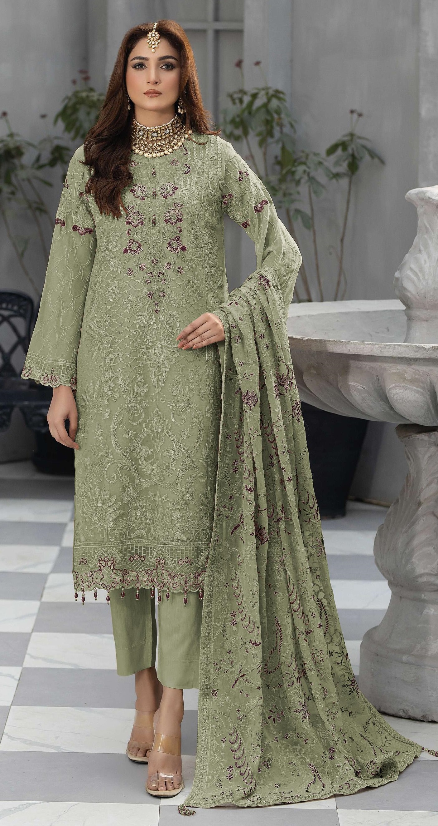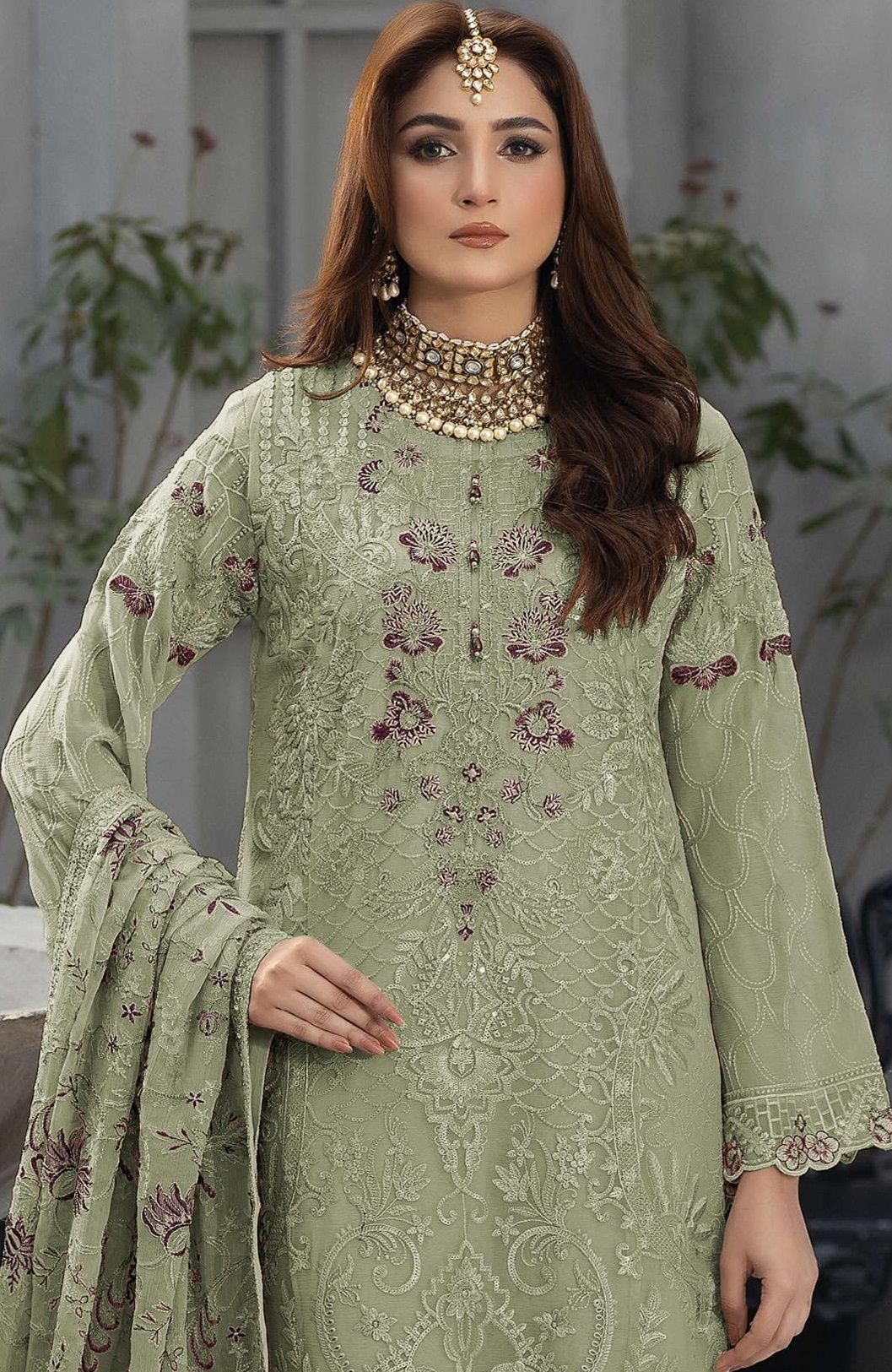 Light Sea Green Fox Georgette Embroidered Semi Stitched Salwar Suit