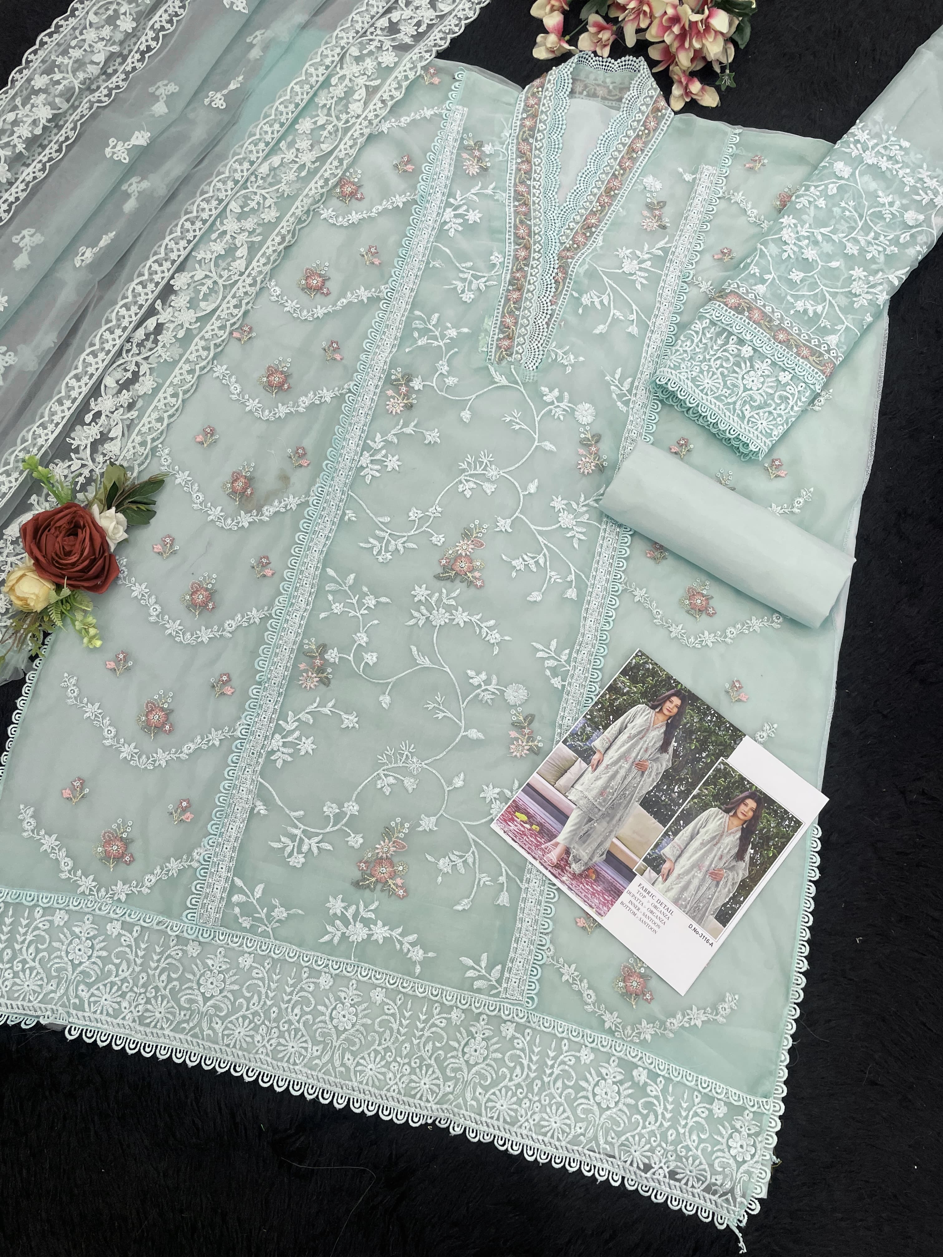 Light_Green Embroidered Organza Semi Stitched Salwar Suit