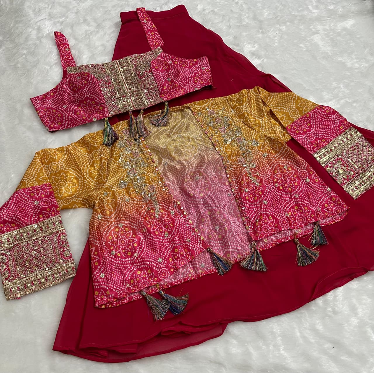 Magenta heavy chinon silk readymade 3 piece set with sequence & mirror work