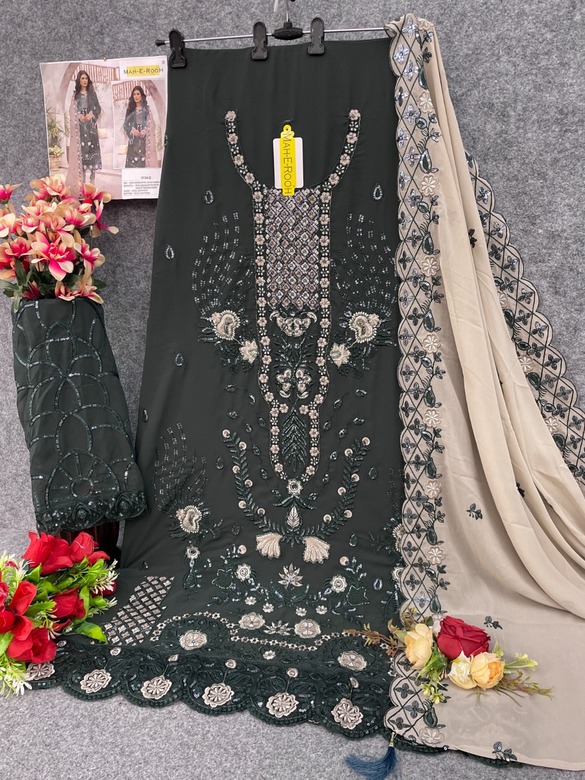 Mahendi Embroidered Faux Georgette Semi Stitched salwar Suit