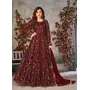 Maroon Embroidered Butterfly Net Semi Stitched Anarkali Suit