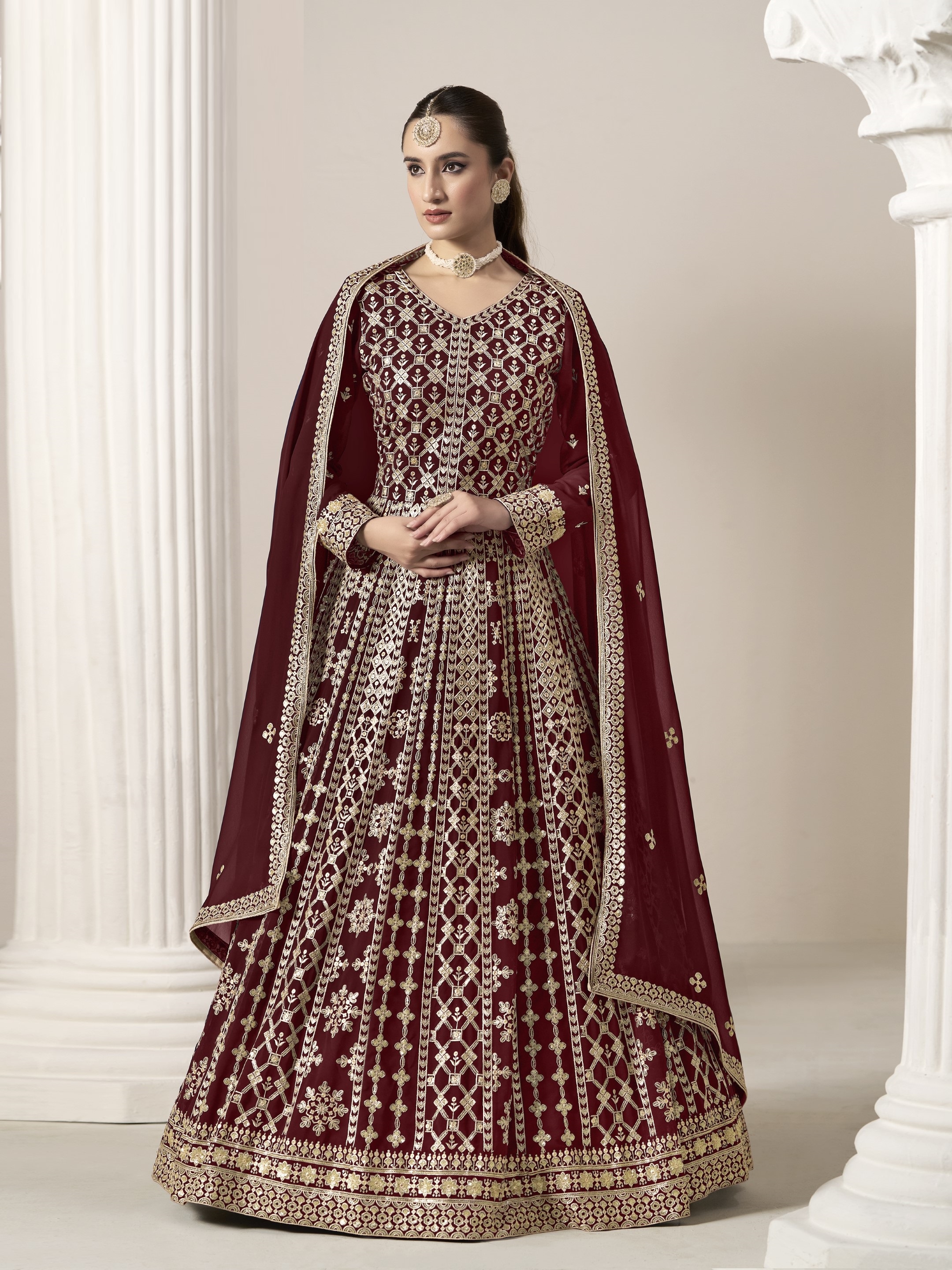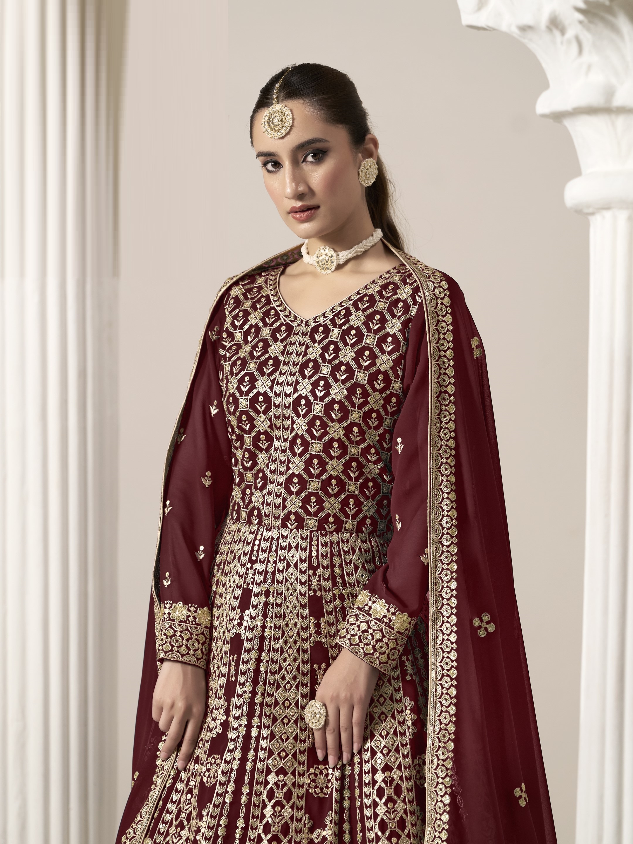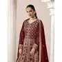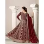 Maroon Embroidered Faux Georgette Semi Stitched Anarkali Suit
