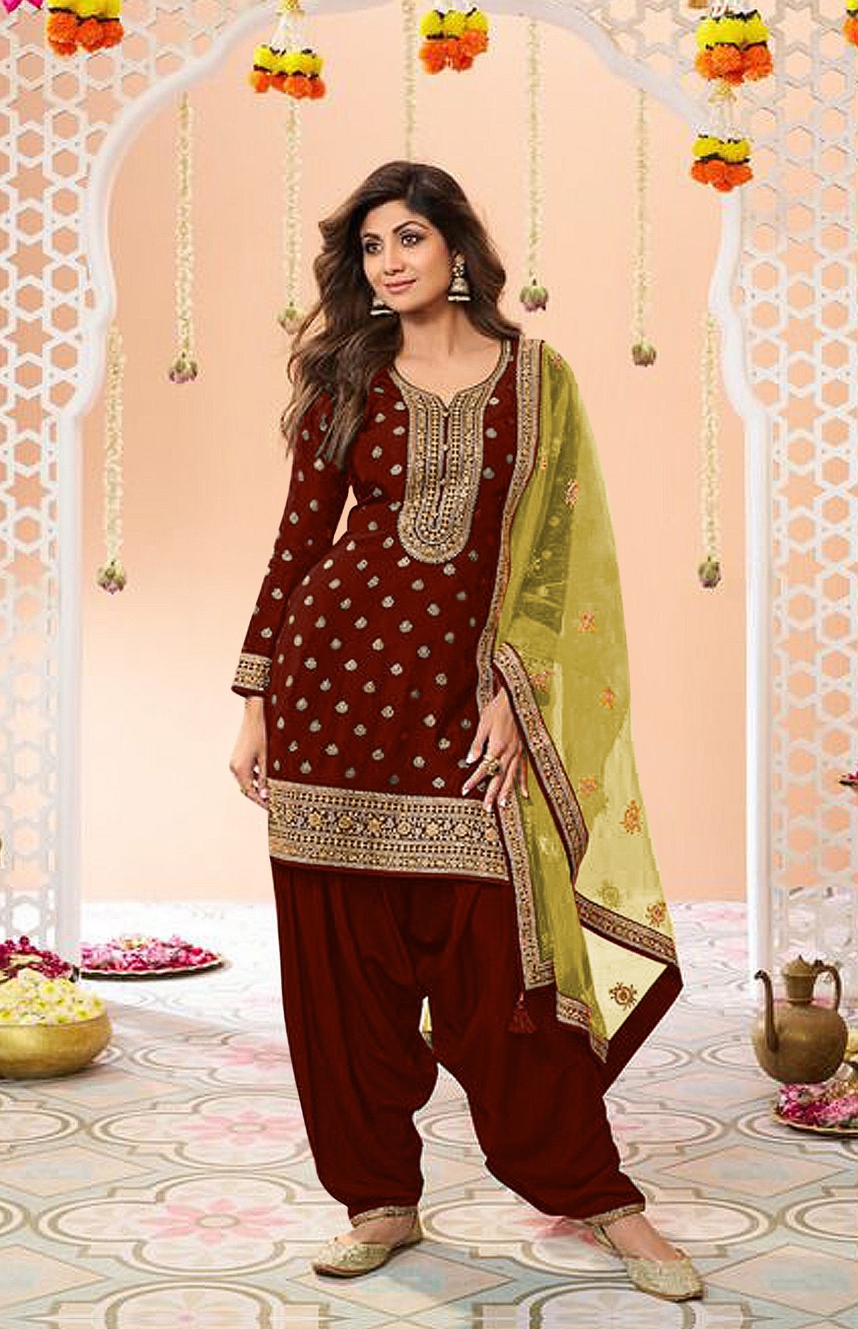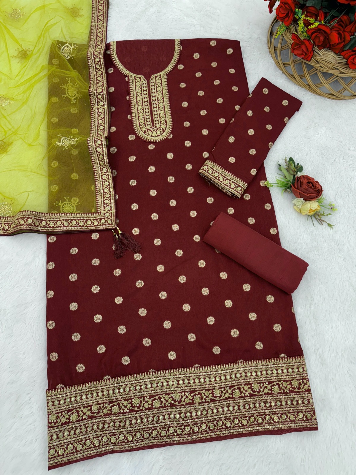 Maroon Embroidered Viscose Semi Stitched Patiala Salwar Suit