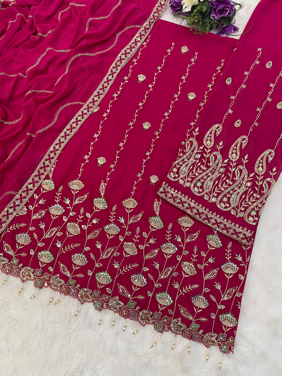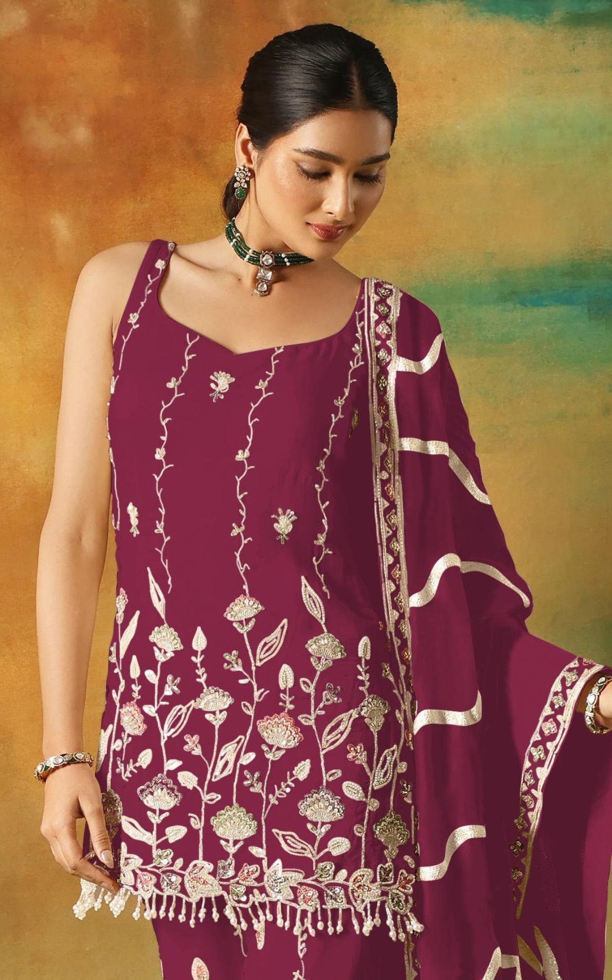 Maroon Heavy Fox Georgette Semi Stitched Suit With Embroidery Work