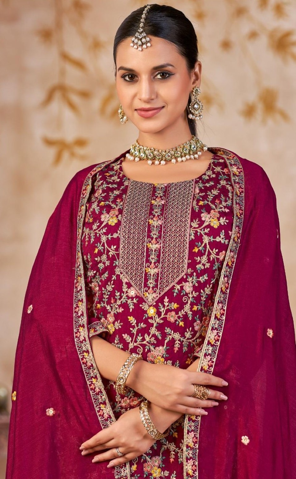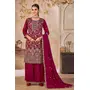 Maroon Vichitra Silk Readymade Plazzo Suit with Embroidery & Lace Work