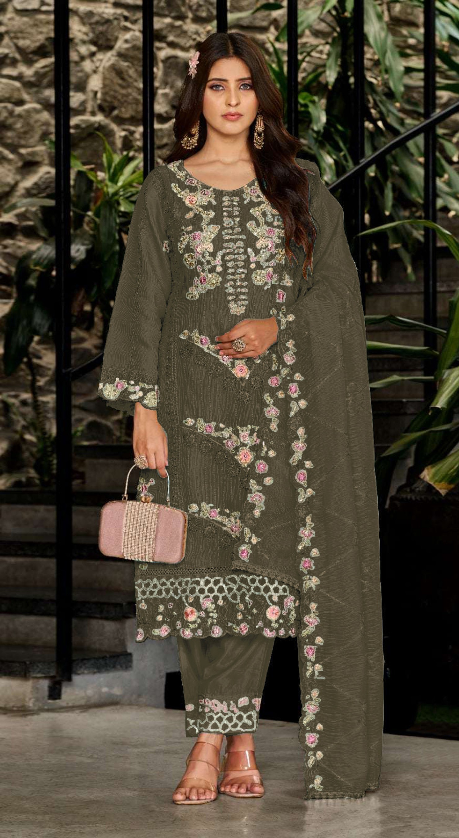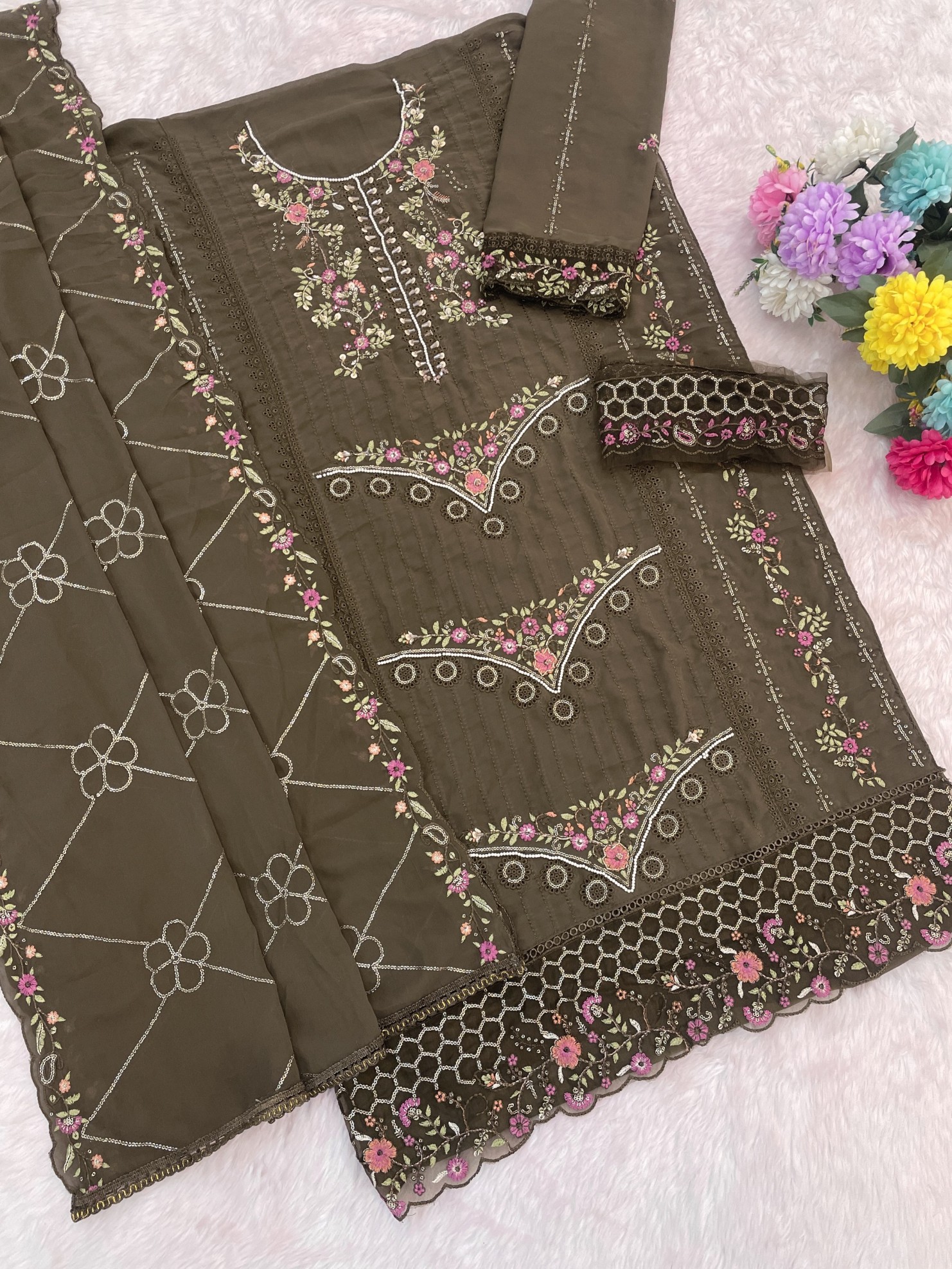 Mehendi Fox Georgette Semi Stiutched Suit with Embroidery Sequenc & Khatli Work
