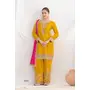 Mustard Chinon Readymade Suit with Embroidery Coding & Sequence Work