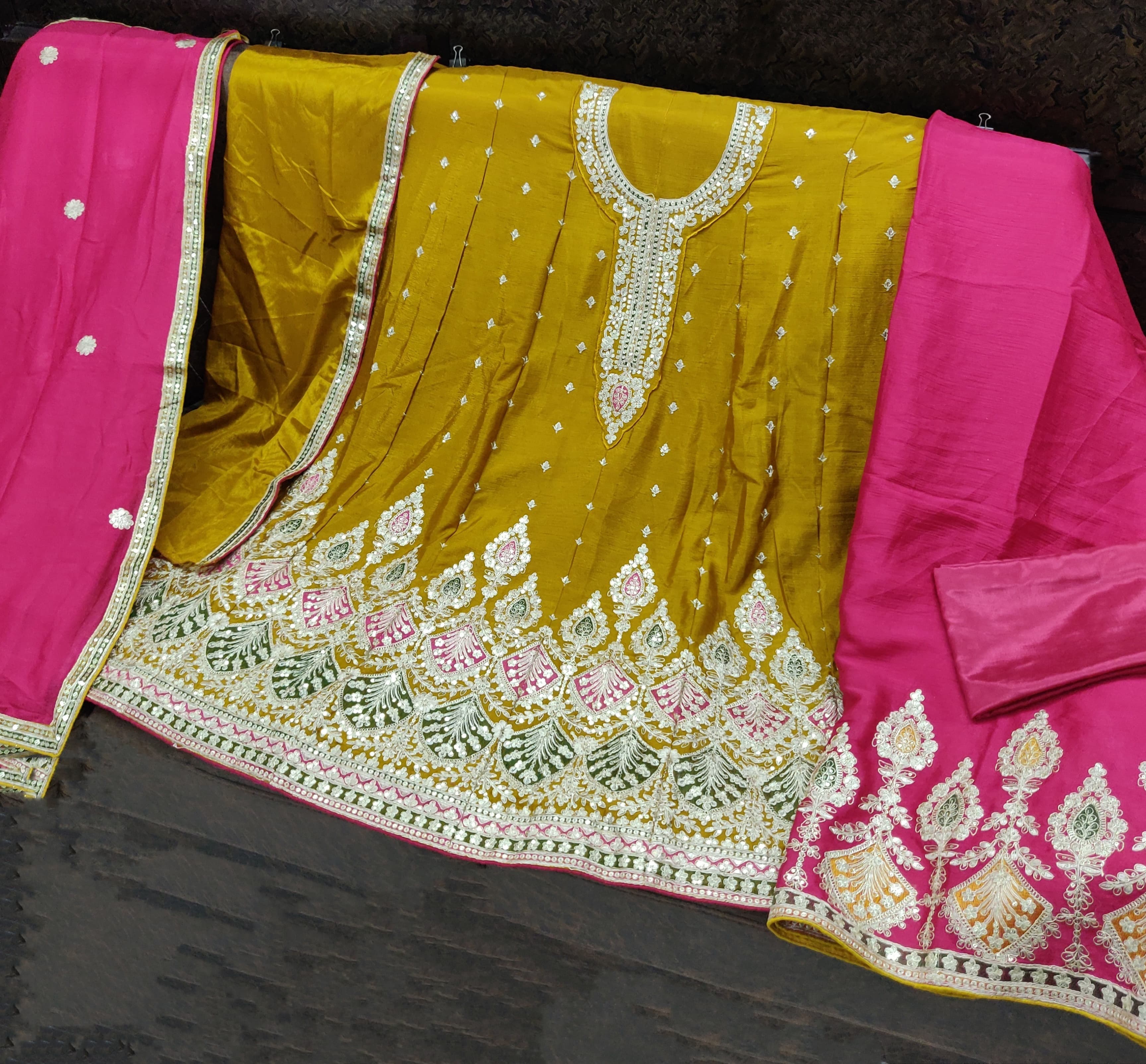 Mustard Embroidered Premium Semi Stitched Salwar Suit