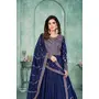 Navy Blue Embroidered Art Silk Semi Stitched Anarkali Suit