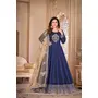 Navy Blue Embroidered Tapeta Silk Semi Stitched Anarkali Suit
