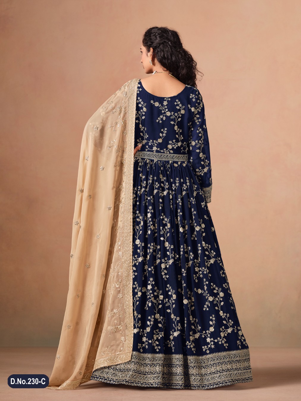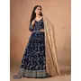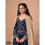 Navy Blue faux georgette jacquard embroidered work semi stitched anarkali suit