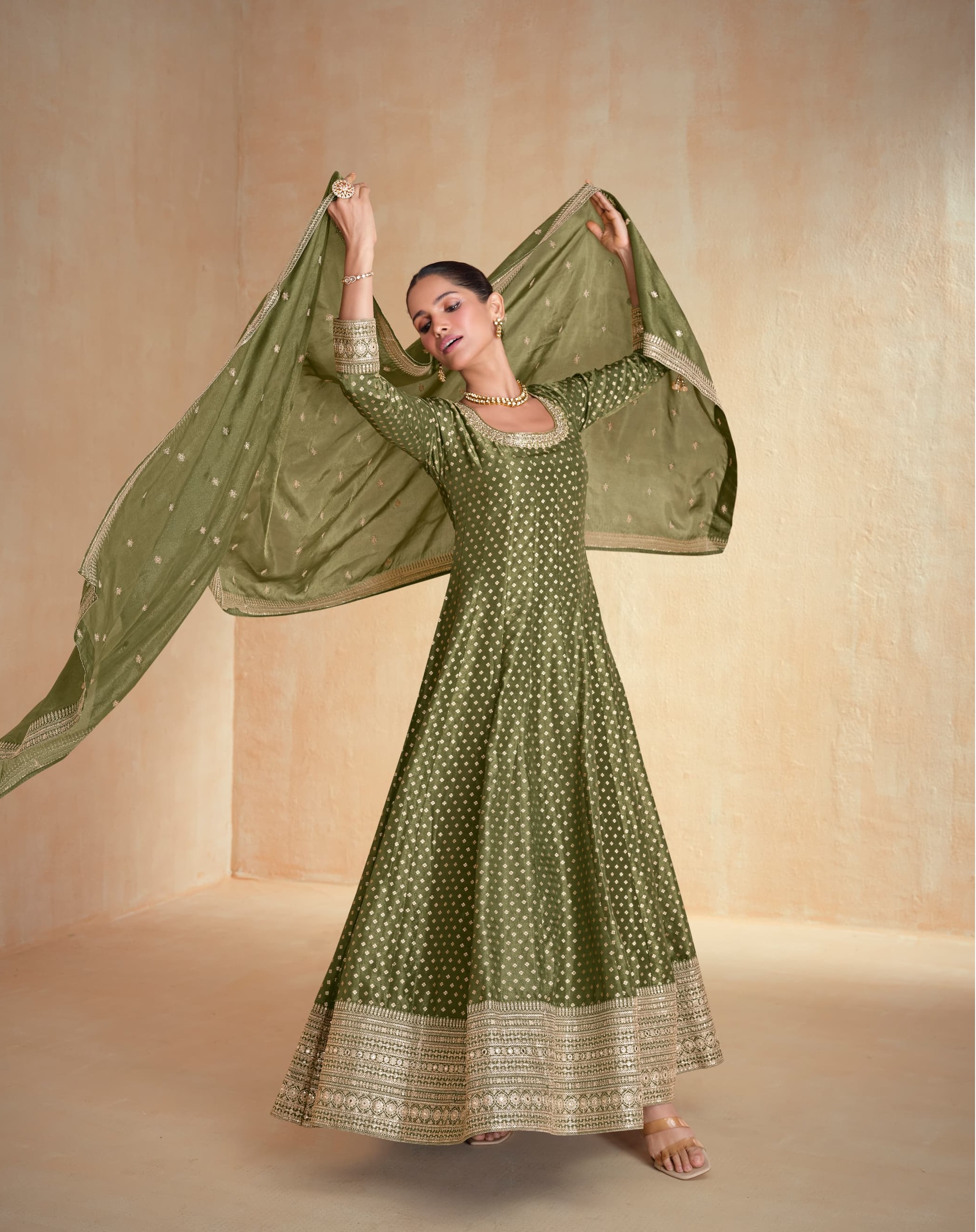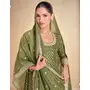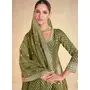 Oliveb Green embroidered viscose jacquard free Size stitched anarkali suit