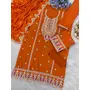 Orange Premium Embroidered Chinon Semi Stitched Salwar Suit