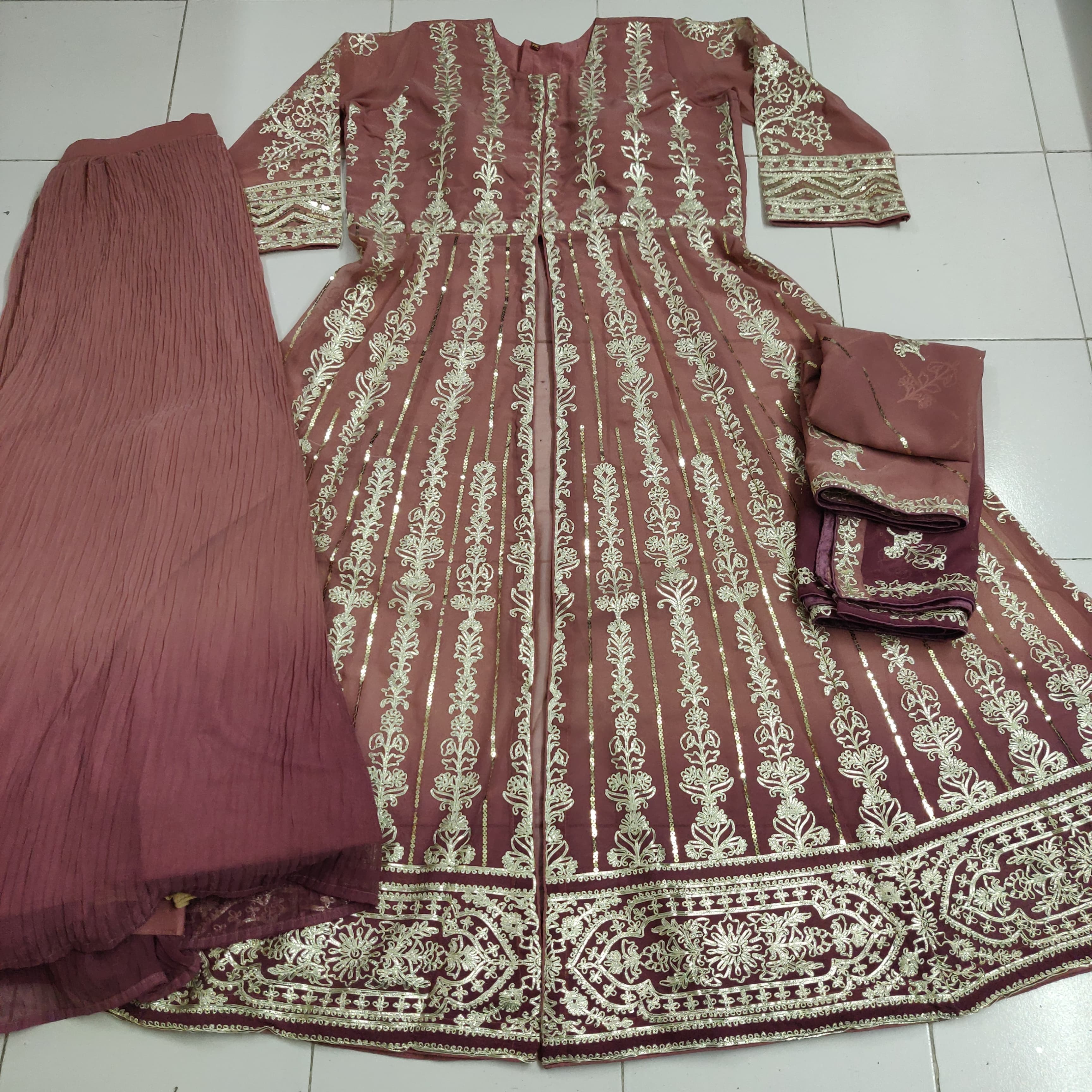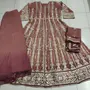 Peach Embroderied Silk Semi-Stitched Anarkali Suit(Free size)