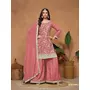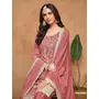 Peach Embroidered Chinon Silk Semi Stitched Palazzo Suit