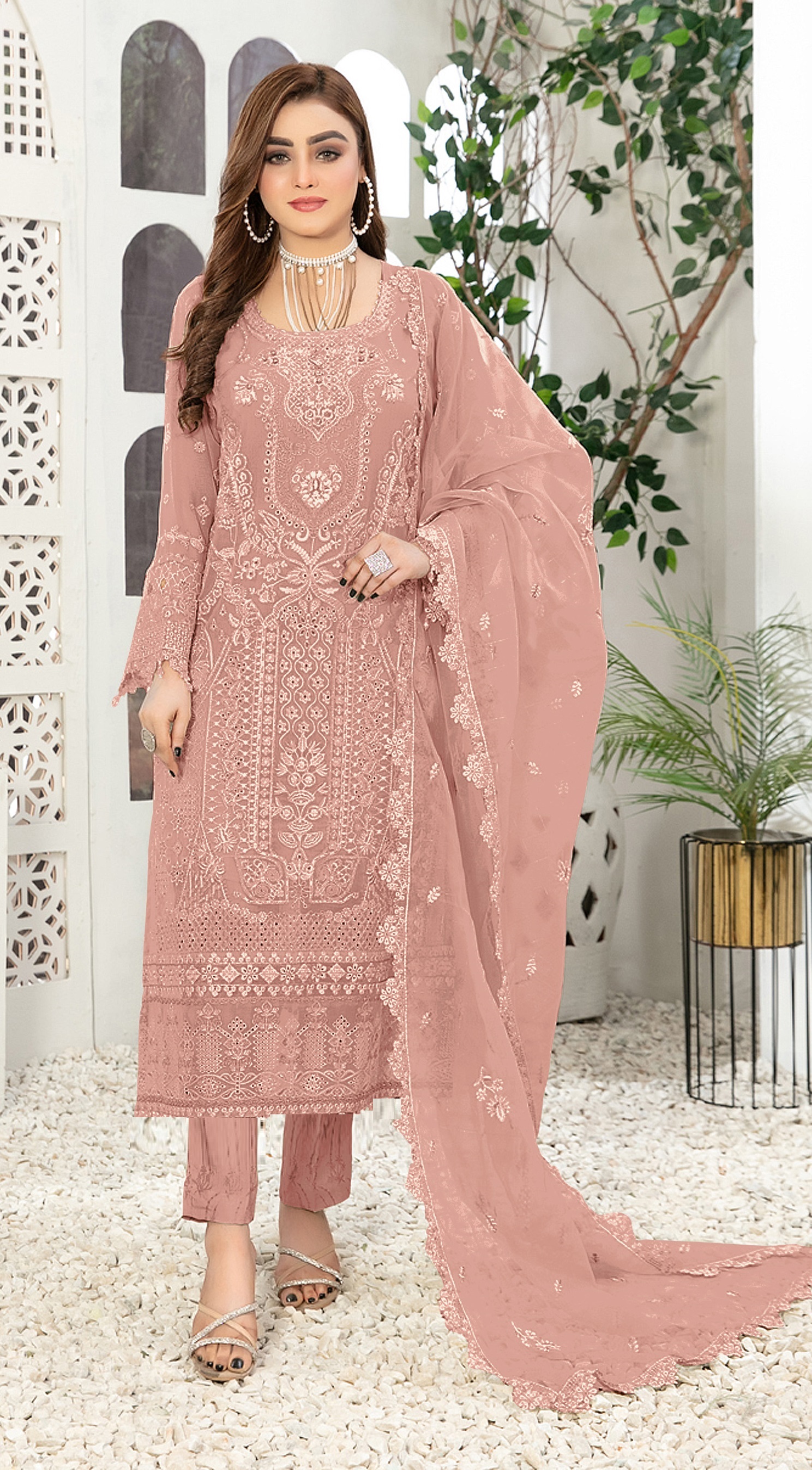 Peach Embroidered Faux Georgette Semi Stitched Salwar Suit