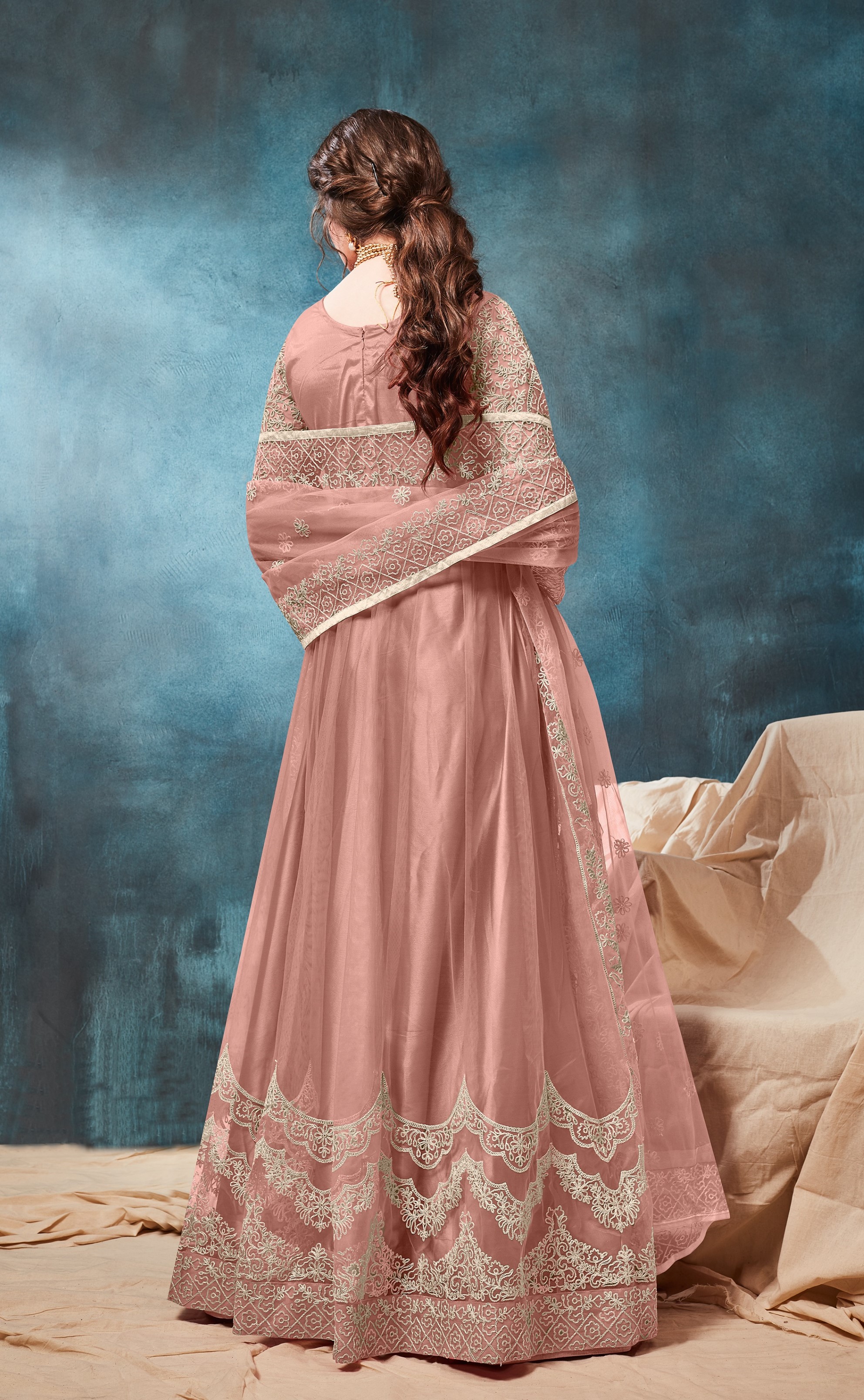 Peach Embroidered Net Semi Stitched Anarkali Suit