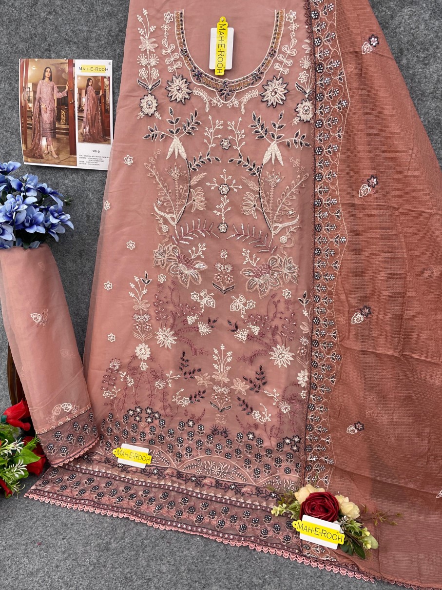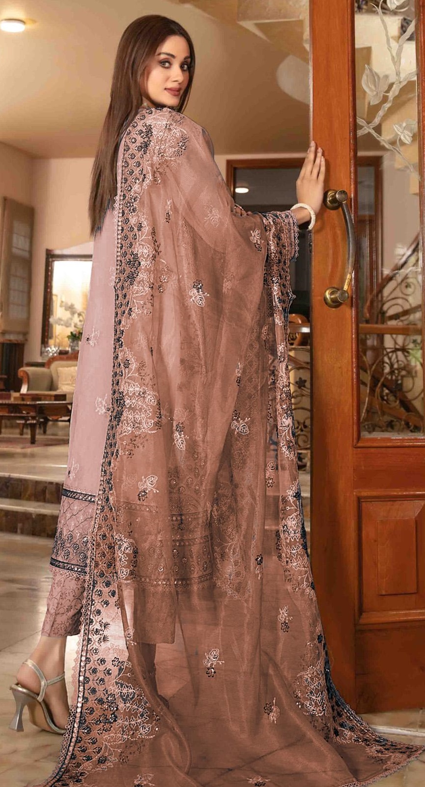 Peach Embroidered Organza Semi Stitched salwar Suit