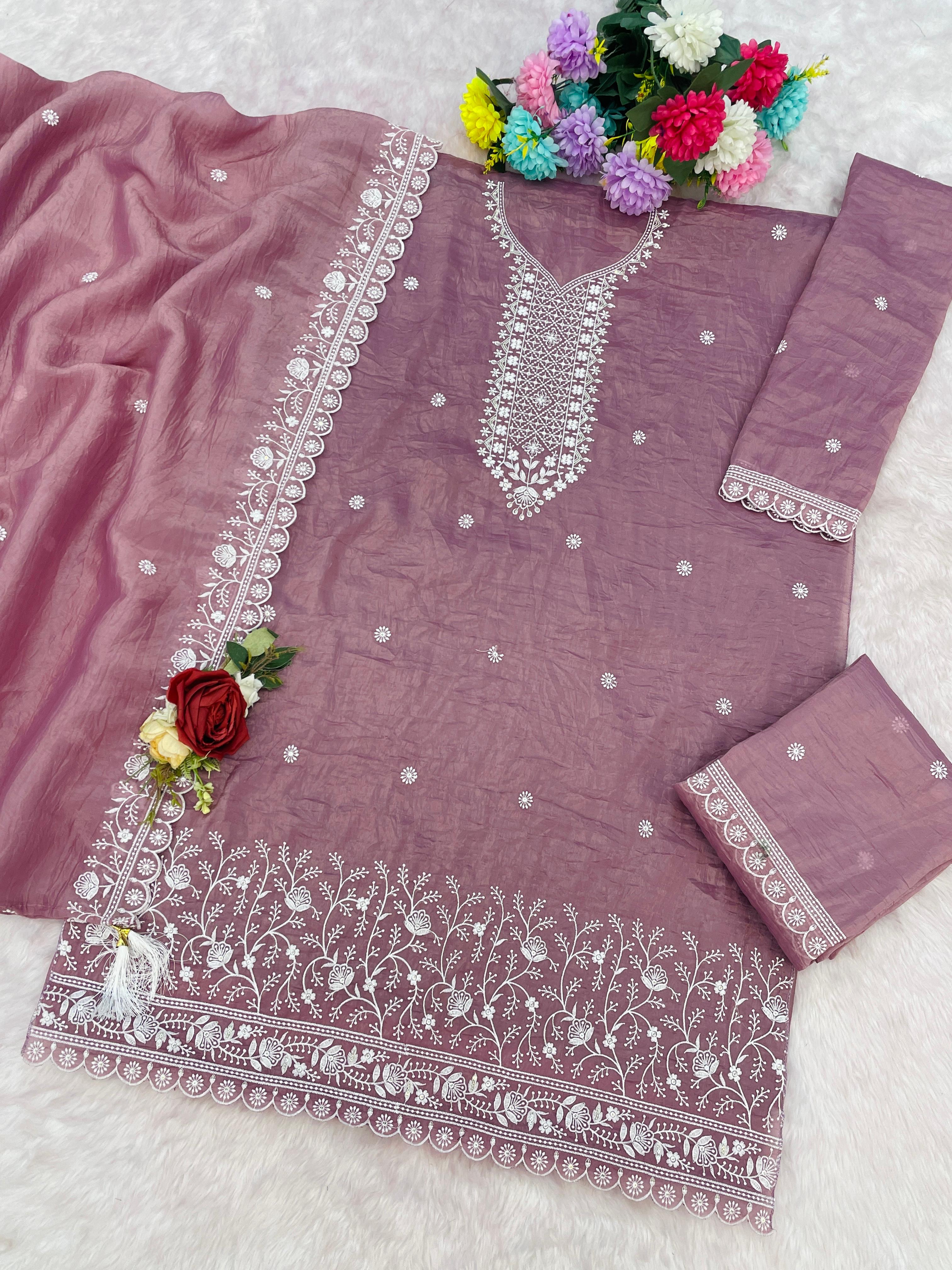 Peach Gold Crush semi stitched suit with heavy embroidery work