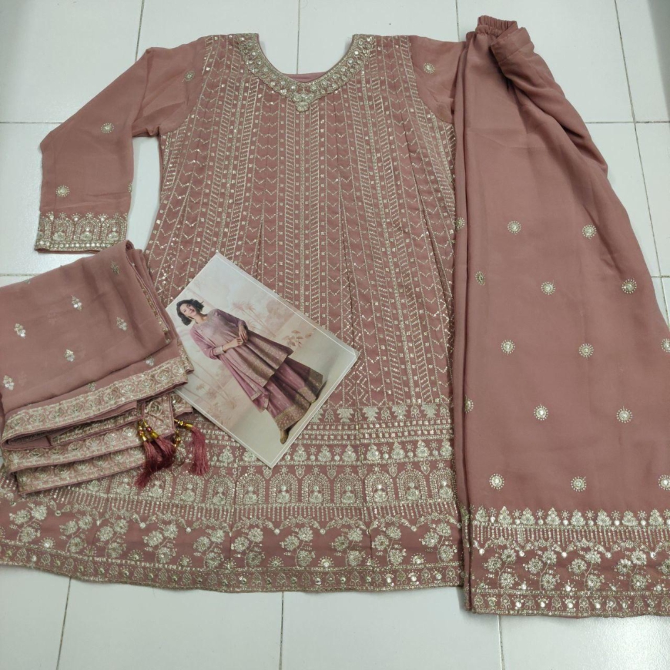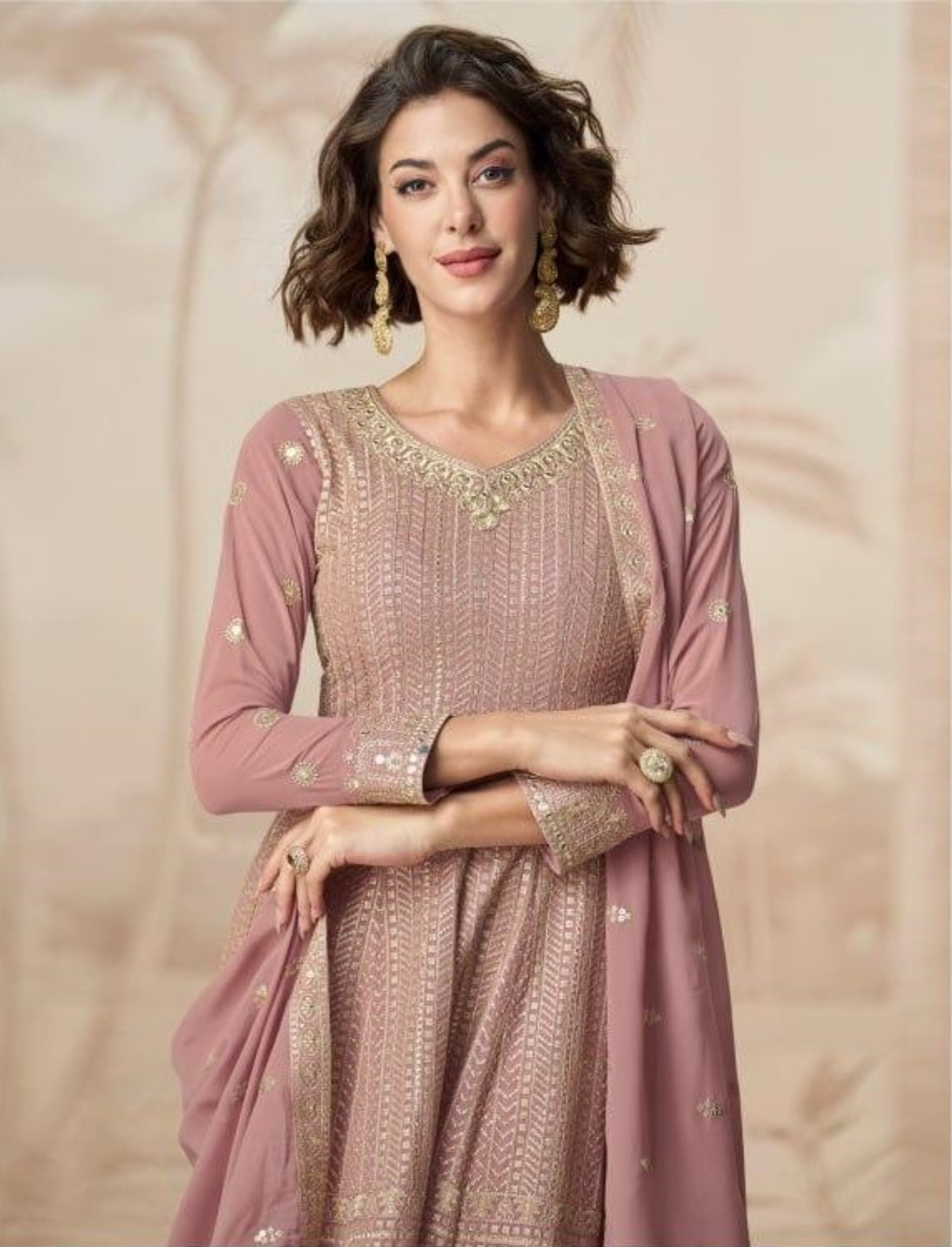 Peach Heavy Fox Georgette Free Size Stitched Suit with Sequence Work
