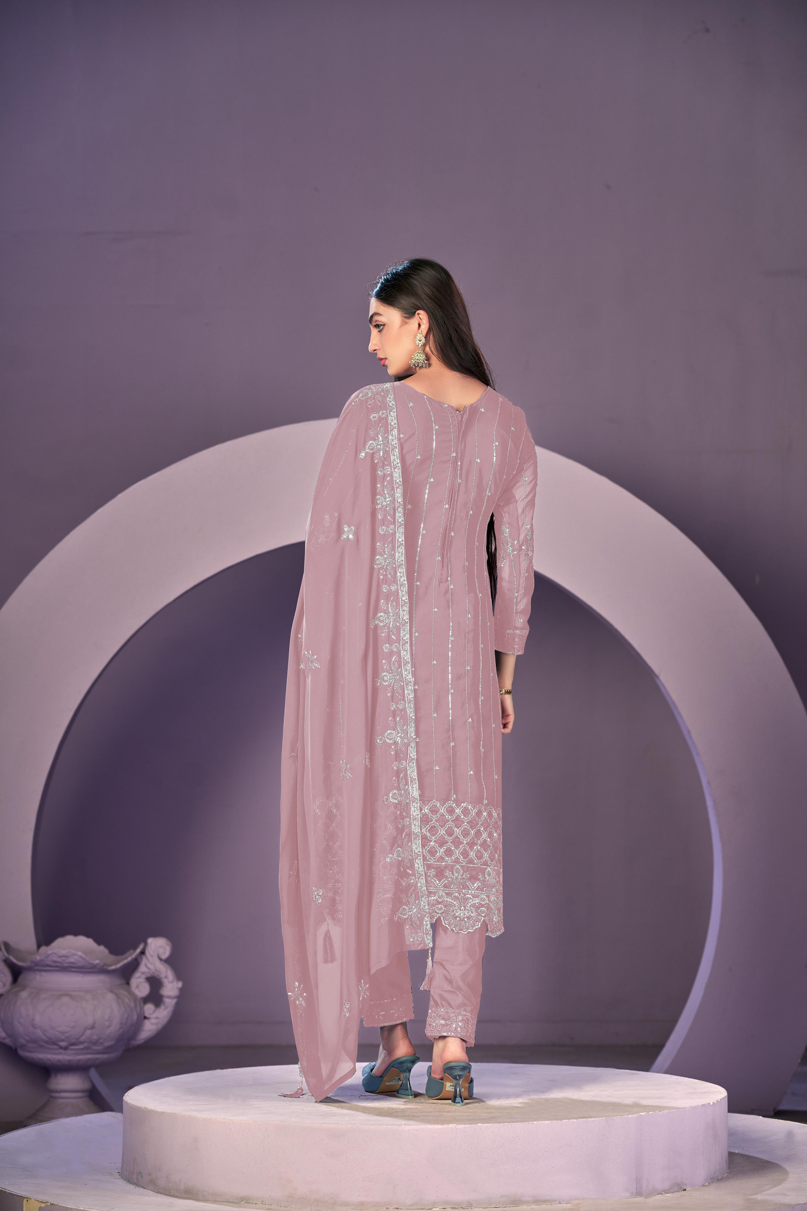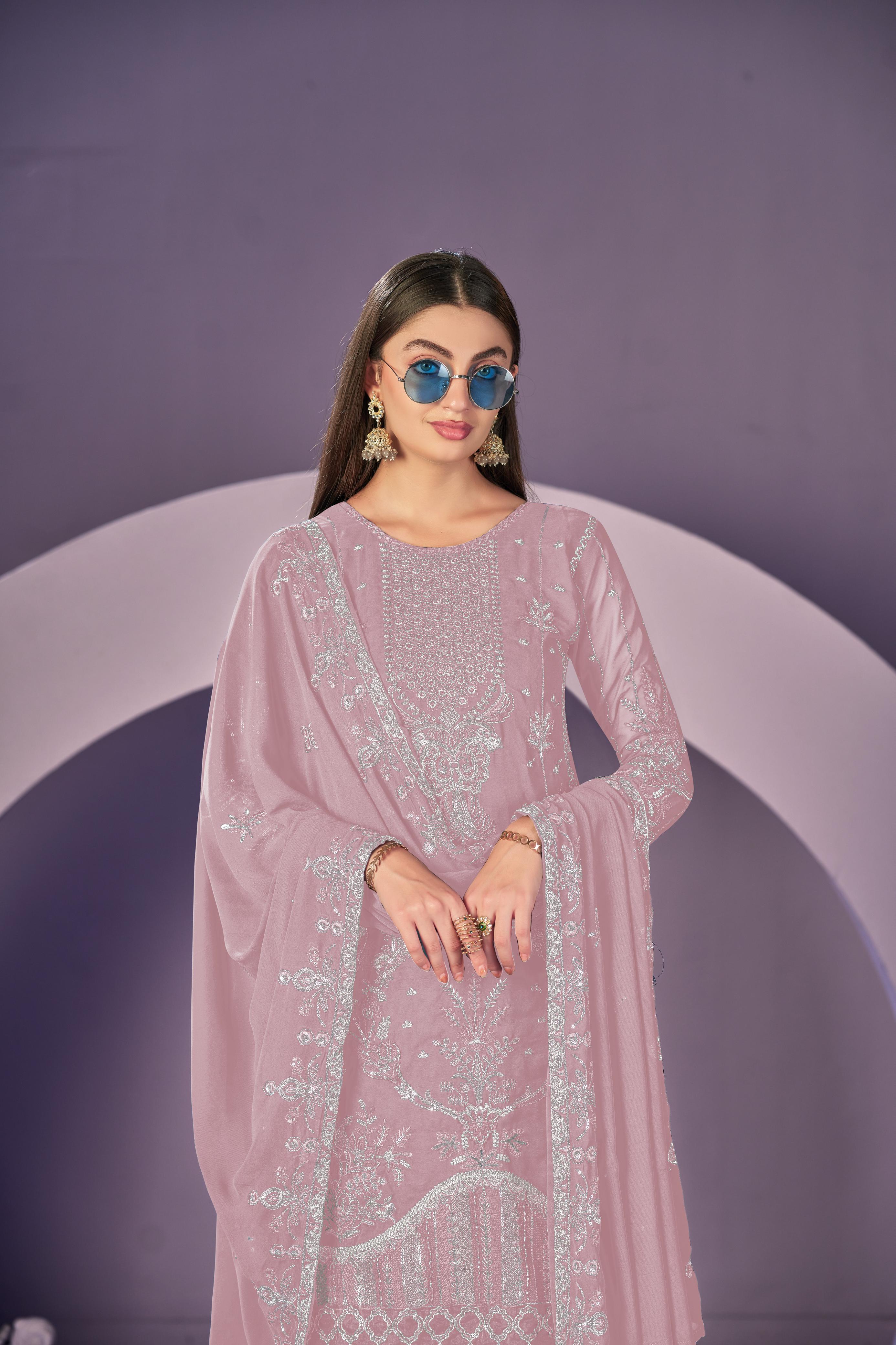 Peach heavy georgette embroidered semi stitched suit with khatli work