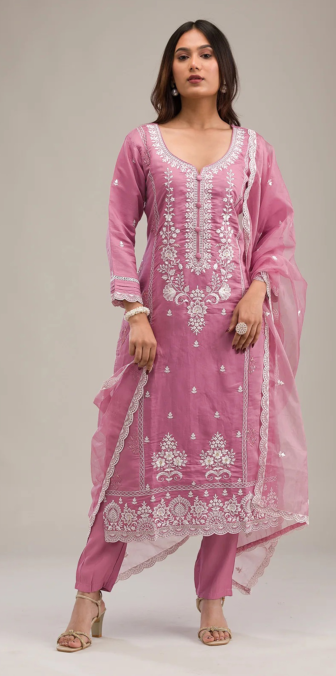 Pink Embroderied Silk Semi-Stitched Salwar suit