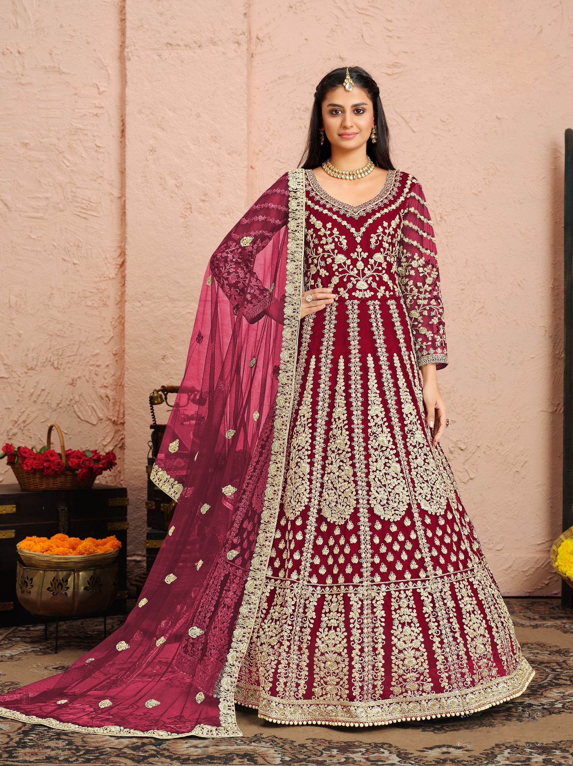 Pink Embroidered Net Semi Stitched Anarkali Suit