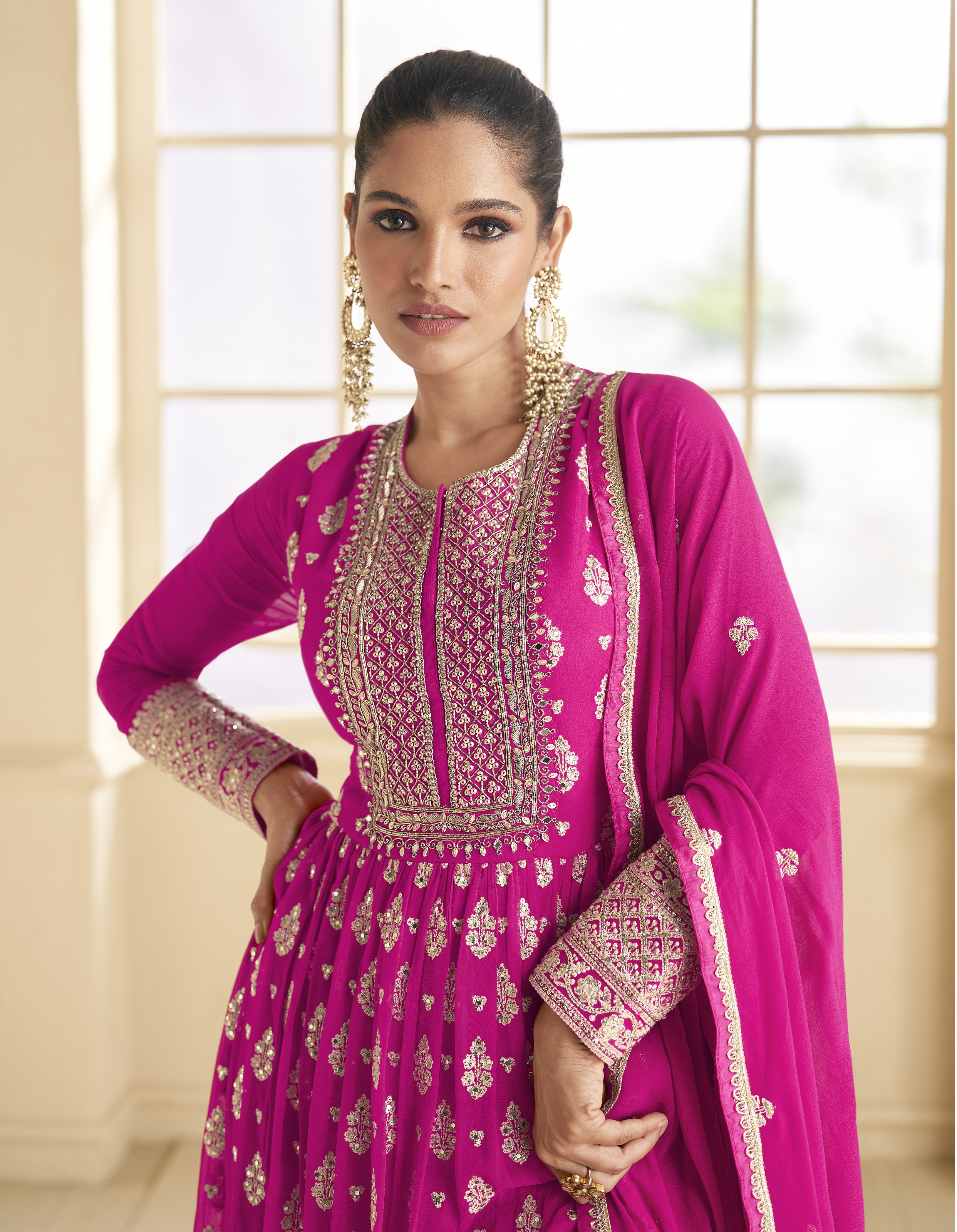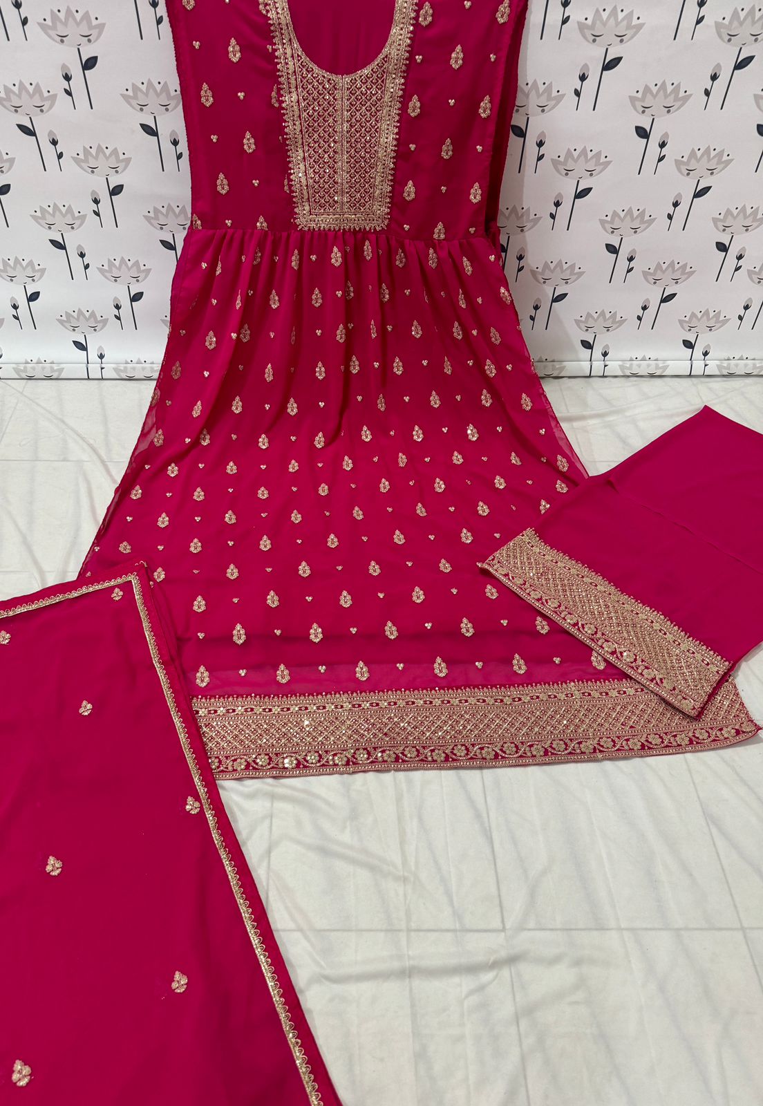 Pink Embroidered Viscose Jacquard Semi Stitched Anarkali Suit