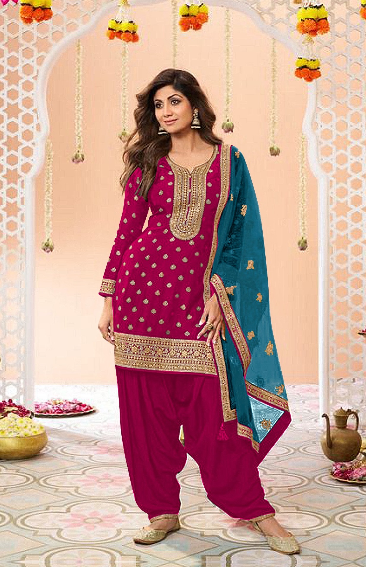 Pink Embroidered Viscose Semi Stitched Patiala Salwar Suit