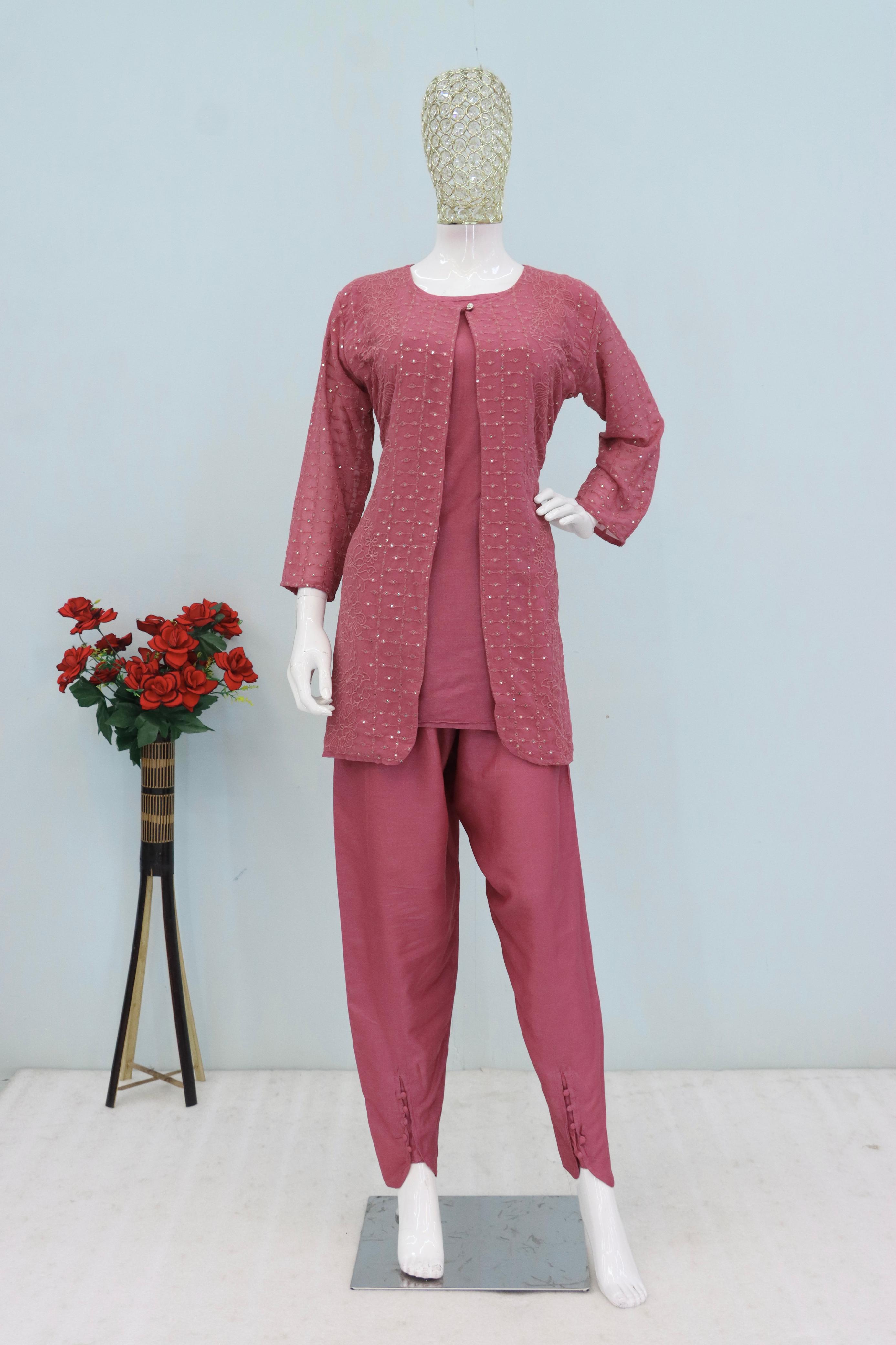 Pink Faux Georgette Readymade 2 Piece Set with Embroidery Work