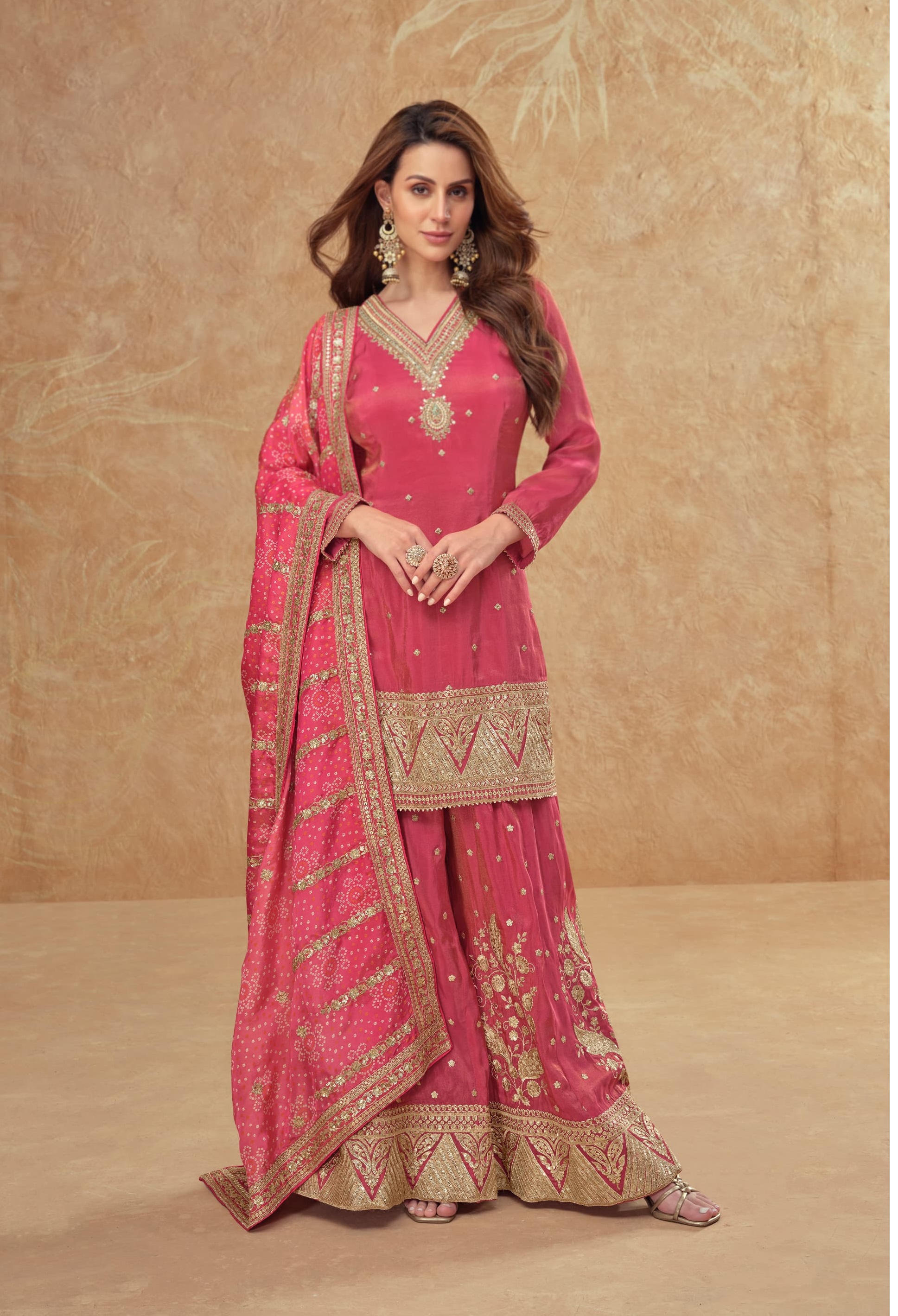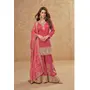 Pink heavy embroidery work cosmos silk sharara suit(ready made)