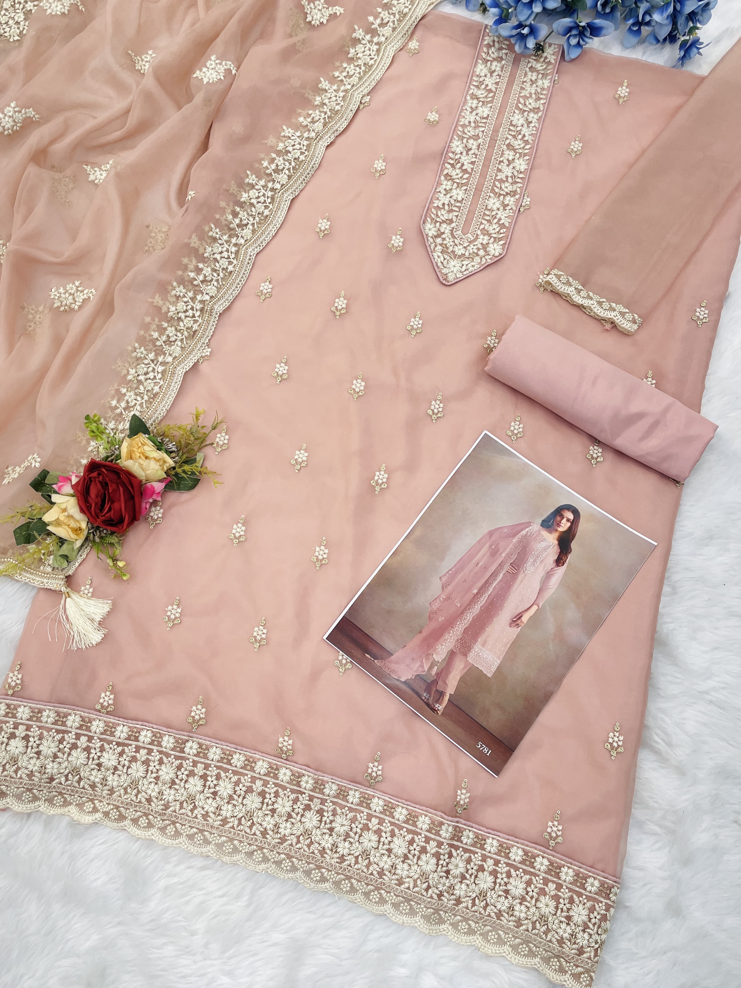 Pink Heavy Orgenza With Embroidery Straight Salwar Suit